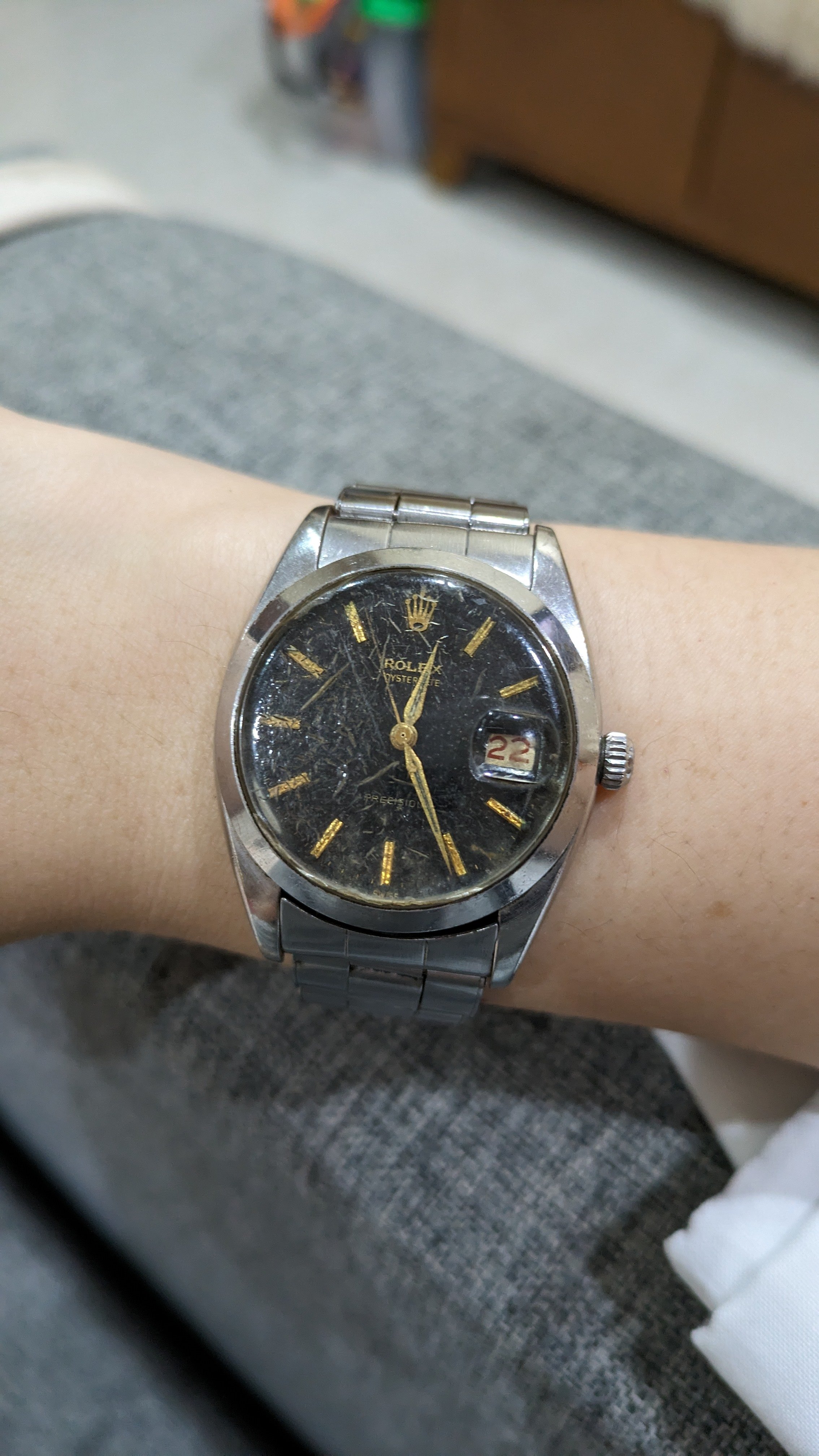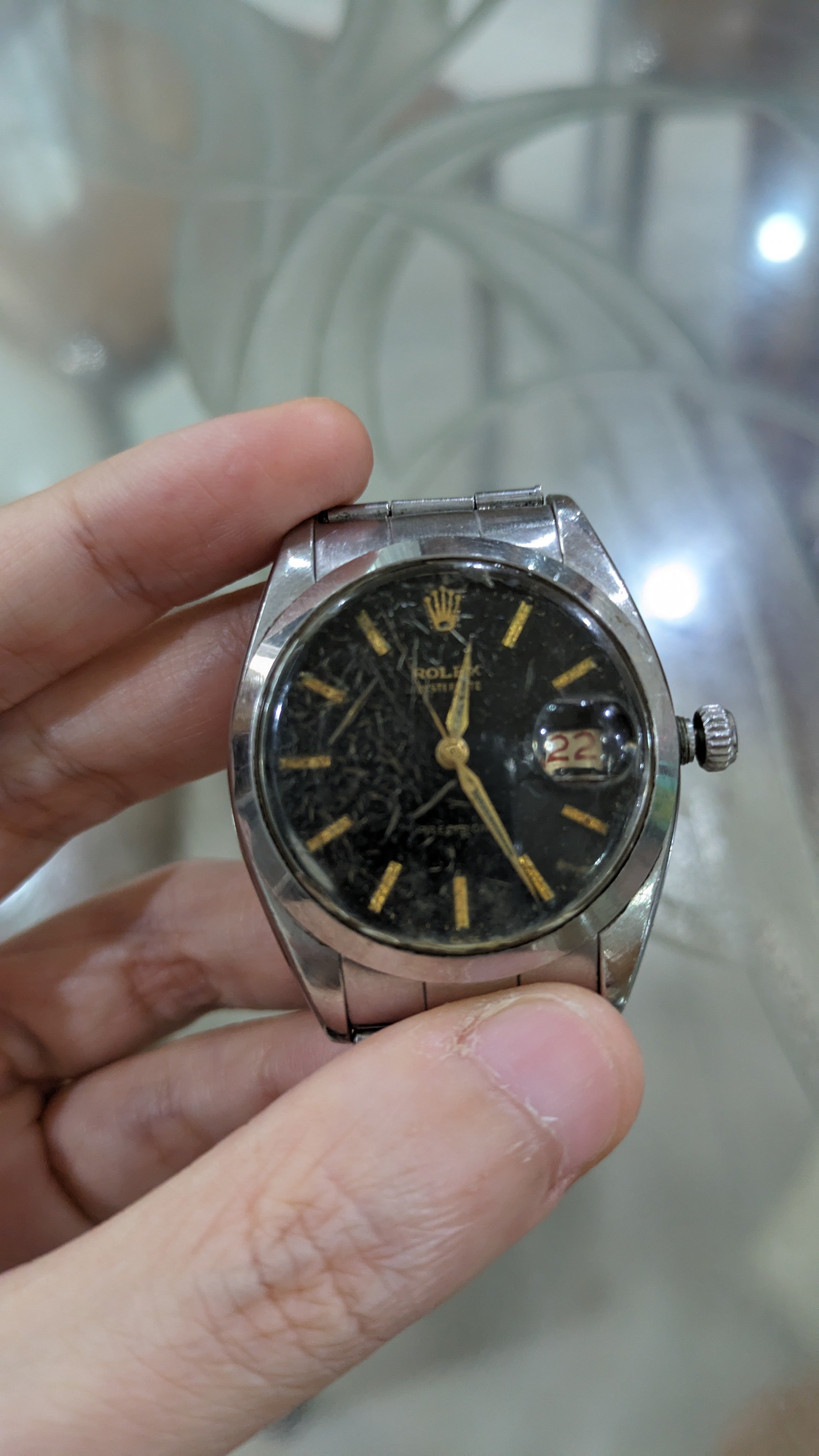 ·Recently I found out that my late grandpa has a couple of vintage Rolex. The crystal for this one is in a bad condition, so for a non-expert like me it's tricky to assess whether this is a genuine rolex. No one in the family knows for sure. We didn't think our grandpa was that rich in his 20s, but then it could be a gift.