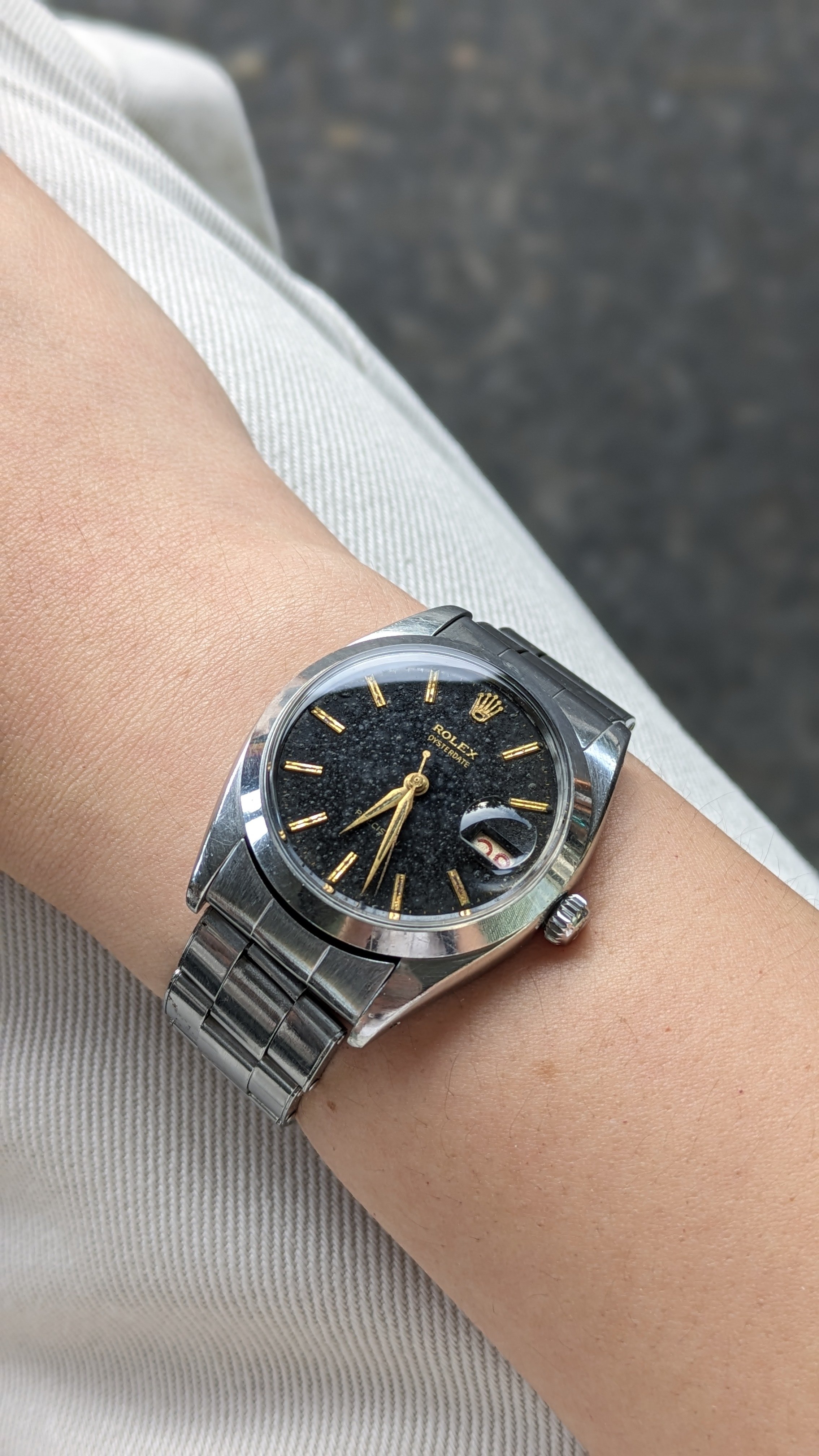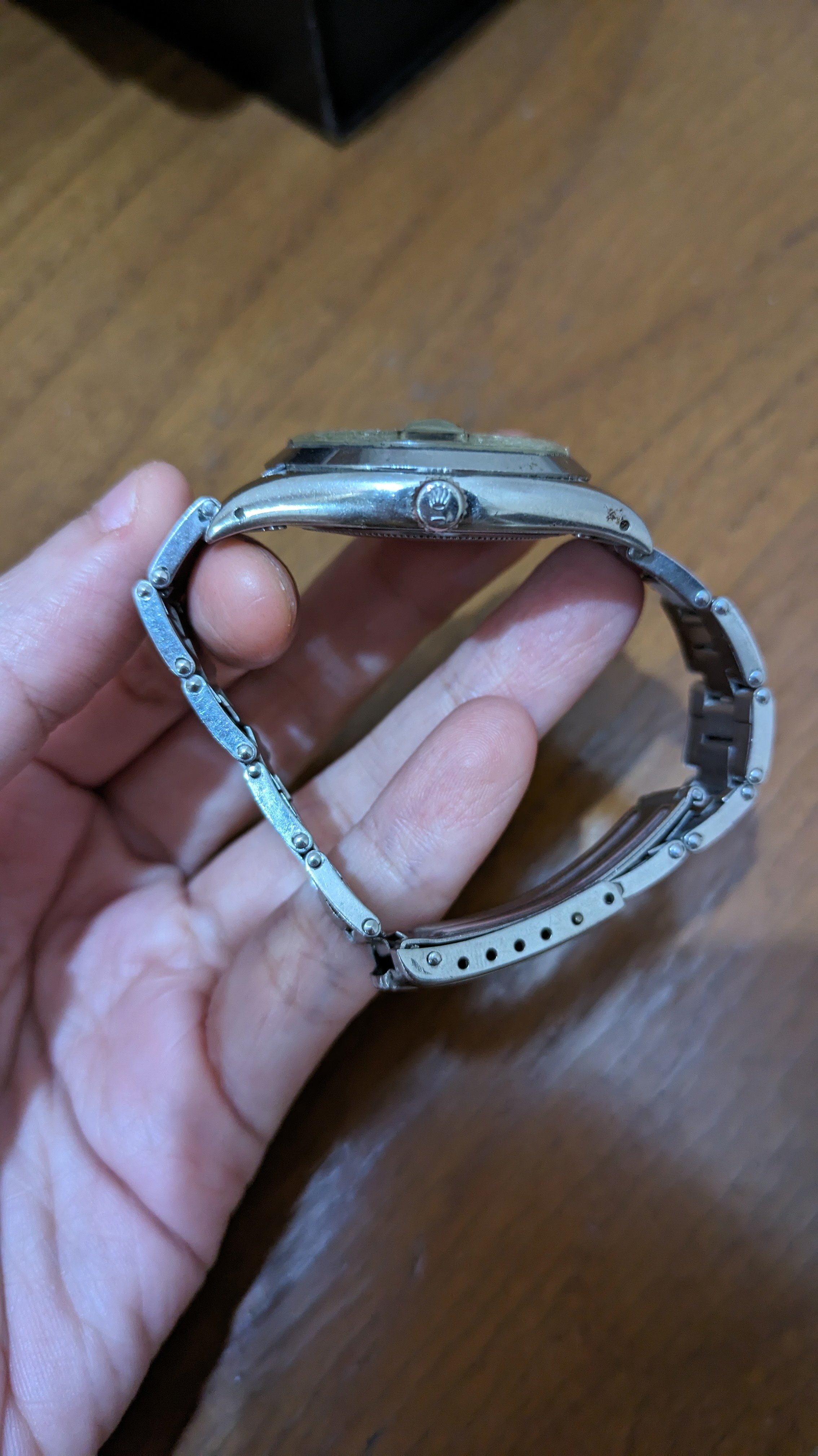 The watch is not working and I don't know how to open the case back, but from what I can see, at least the date lettering seems right and the markers look aligned. I'd like to seek more input from the group here, is there anything else you can conclude from the appearance? Happy to supply more photos if needed (except for the movement). Thanks!