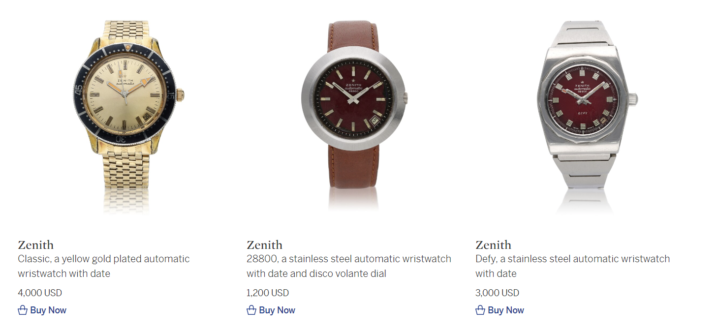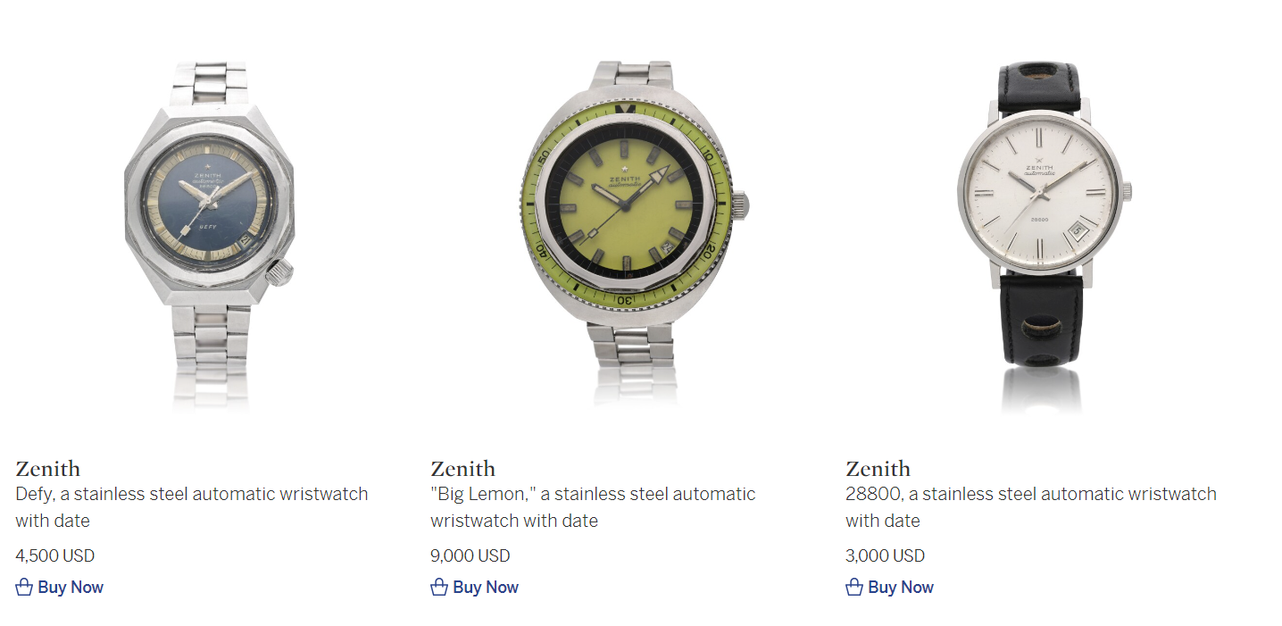 Greg Selch has some vintage Zeniths for sale at Sotheby's.