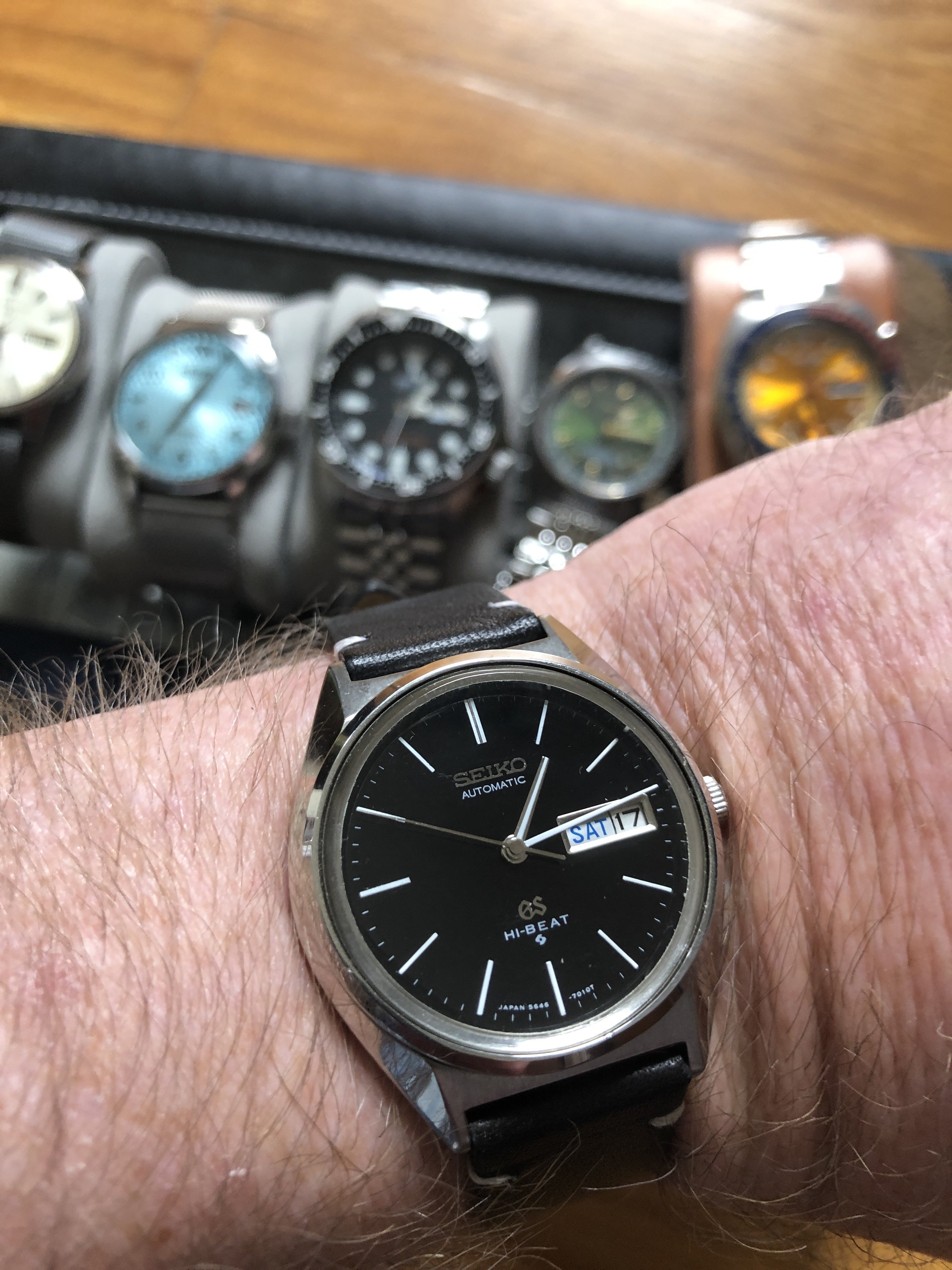 Here's one of my keepers, originally bought as a parts watch, obviously, for ~$250, but came with the XQB GS bracelet and turned out to be surprisingly clean inside. I am hardly ever interested in patina, but the 'Mouldy Lemon' has become a warm weather beater. Note the 56 dials are prone to discolouring and changing.