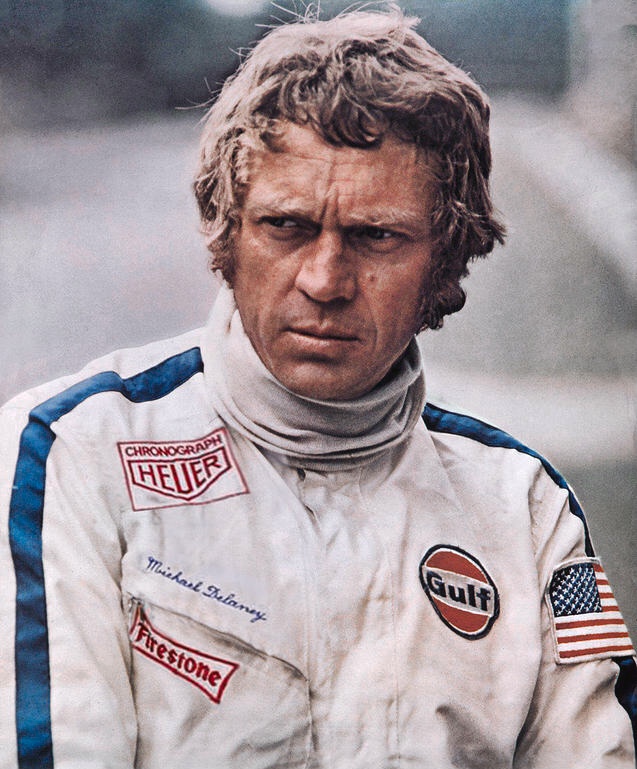 Sure there were at least two different racing overalls, because there are also many pictures showing the Heuer logo and the Michael Delaney name, including the cover of my Blu-Ray copy of the movie, and -for sure- not all these pictures are touched