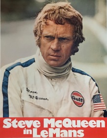 In the movie, Steve's character just wore one racing suit, the one with the double blue & orange-red vertical stripe. The other racing overall that is often seen is not the movie outfit, it's Steve's personal racing suit, as he used to compete professionally in races. His personal suit did not have a Heuer & Firestone patch, or the double Gulf stripe. It had "Steve McQueen", not his character "Michael Delaney" on it.
