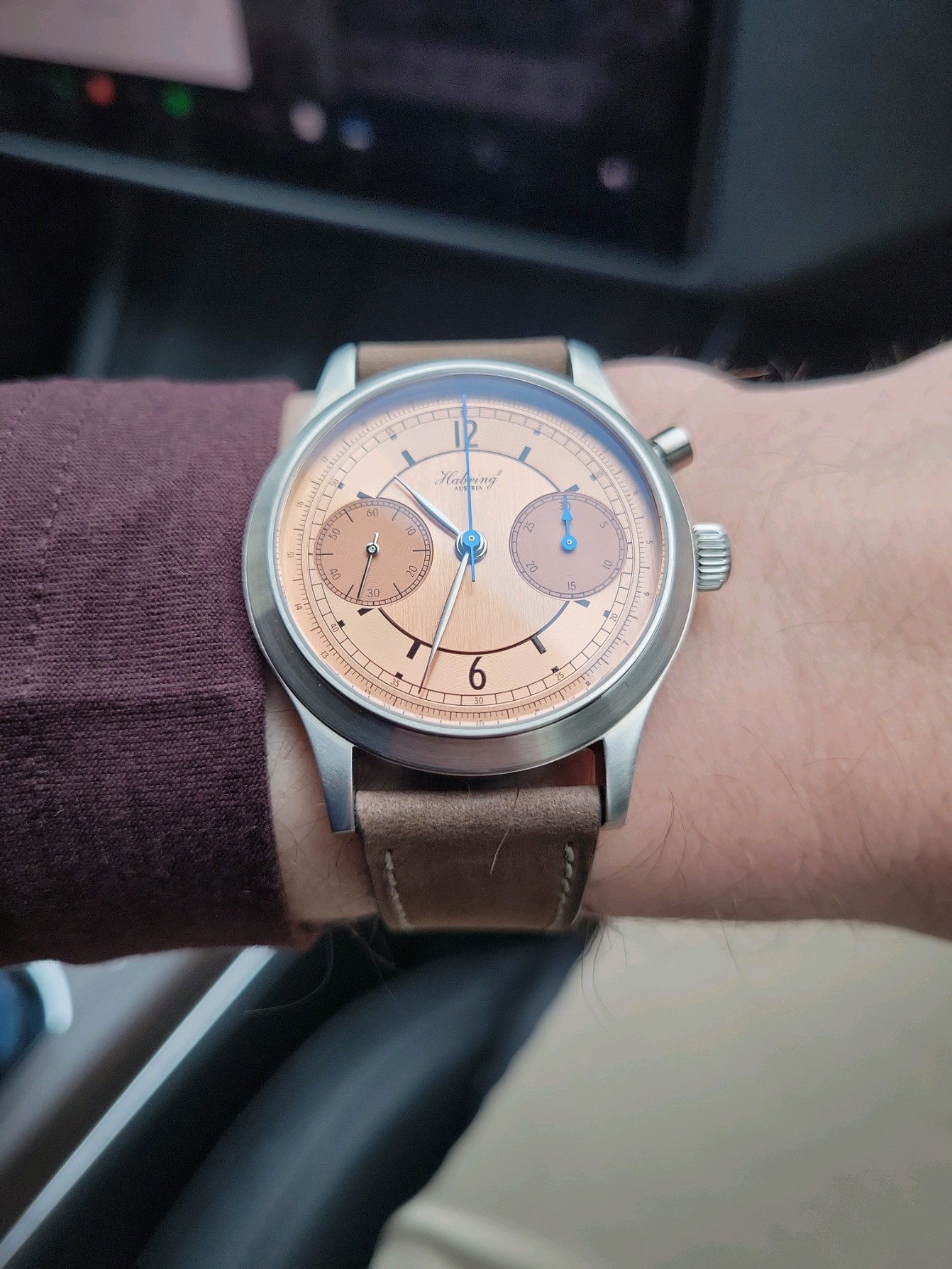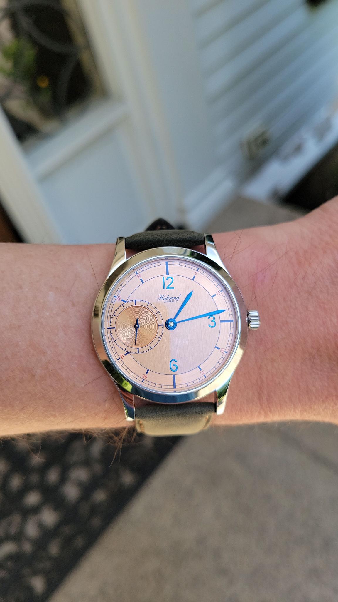 Posts 1,377 Likes 2,802 Ron_W 路Jun 30, 2022 jhross98 just got this today. . think it might actually be better than the monochrome piece. perfect size on the wrist thrilled to have a habring in the collection ! Nice watch 馃憤 and congratulations ! Special order i think ?