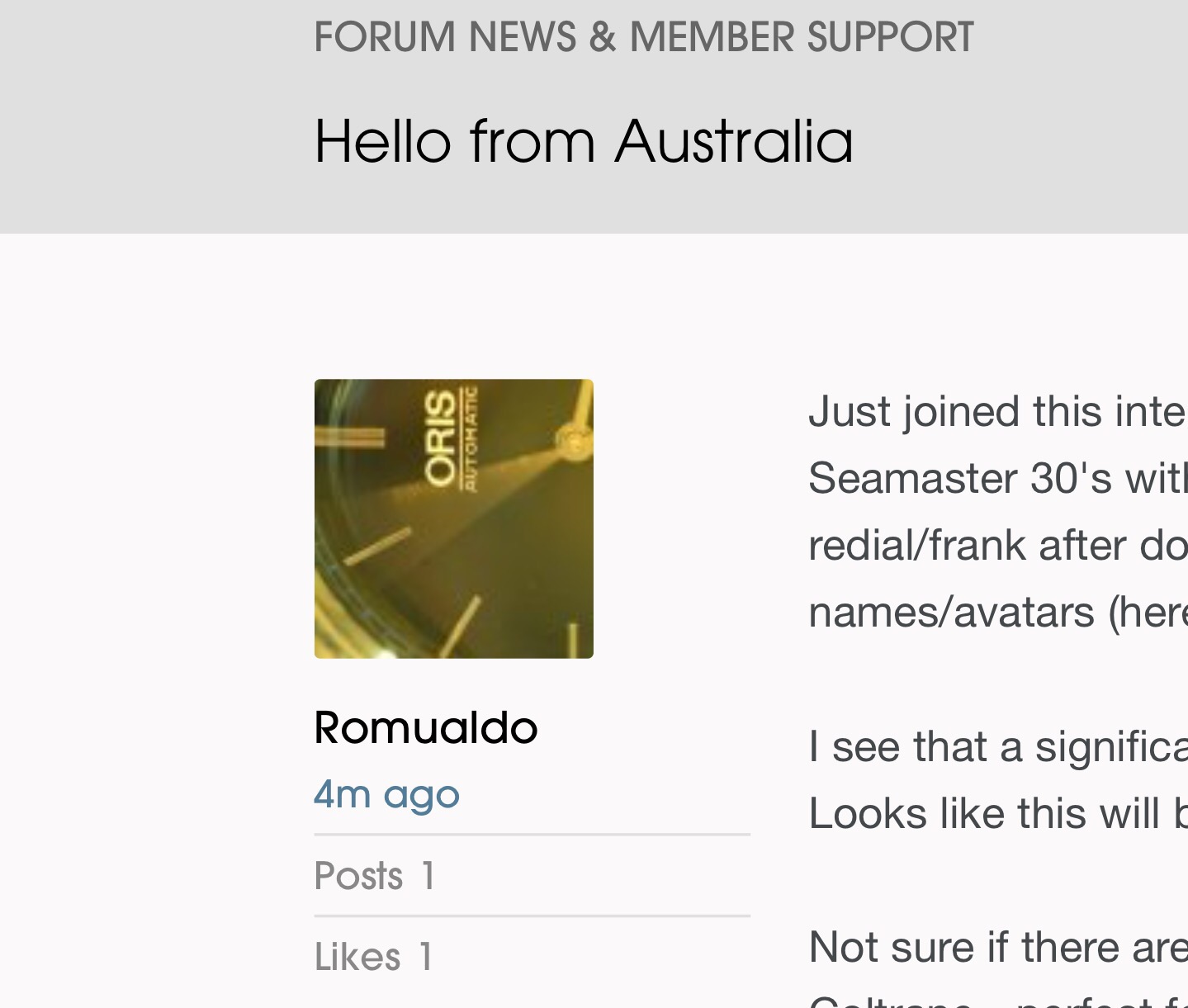 ·Just joined this interesting & informative forum. Don't have a "watch collection" (yet?) but I like the less rare 50's/60's Omegas (especially Seamaster 30's with sub-second dial, particularly black faced versions). I already have one of these (given to me) but I'm very suspicious it's a redial/frank after doing as much research as I could (all internet based) before stumbling onto this forum. I've noticed many of the same names/avatars (here) popping up on many of the sites/links I've been perusing/studying.