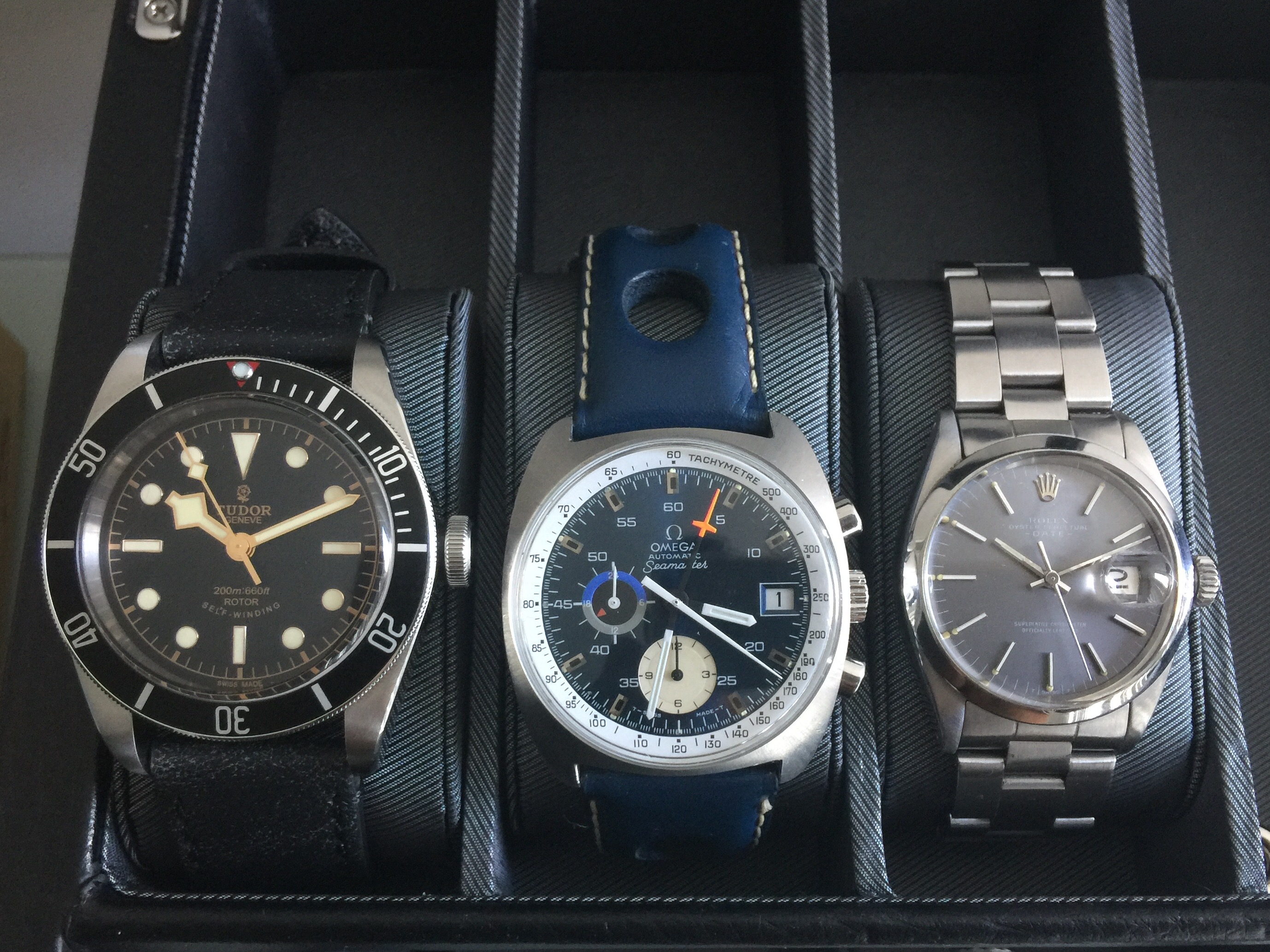 ·I've just joined, have been lurking for a while, so hi all! I'm in IT, travel a lot but live in London (UK), my first watch was a Breitling Emergency back in 2002, followed by a Mumbai-special Omega seamaster 30 (don't judge me too harshly) and a Longine Conquest GMT. I sold them all to buy my first Rolex, a '67 Oysterdate which I still own and is my daily office watch. On the weekends i swap between a '73 seamaster 176.007 and a Tudor black bay (ETA movement) which honestly I only bought because nothing else I own is waterproof and it does rain here occasionally. the Omega is probably the one I get most pleasure from and has got me looking at other vintage Omegas (some serious time being wasted lusting after anything with a Bakelite bezel). Oh and I just bought my first loupe!