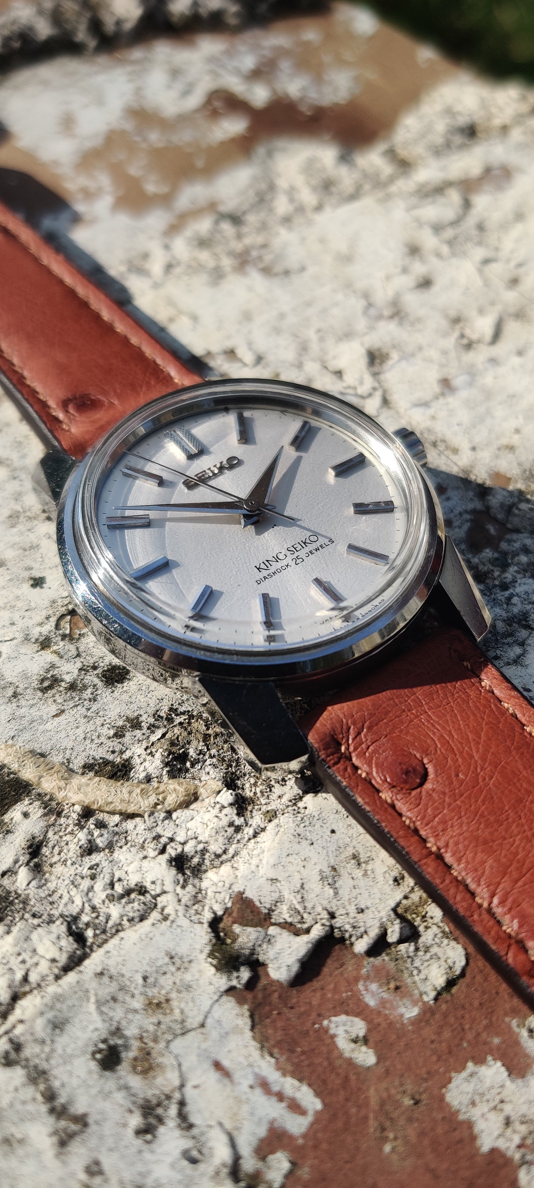 The Omega 30T2RG chronometer movement has a distinctive, black polished ratchet wheel that seems to have inspired that in the King Seiko movement. While the KS movement appears to be an evolution of one designed by FHF (an ETA predecessor), the nod to the Omega chronometer ratchet wheel makes it clear who Seiko saw as the company to beat in the early 1960s: