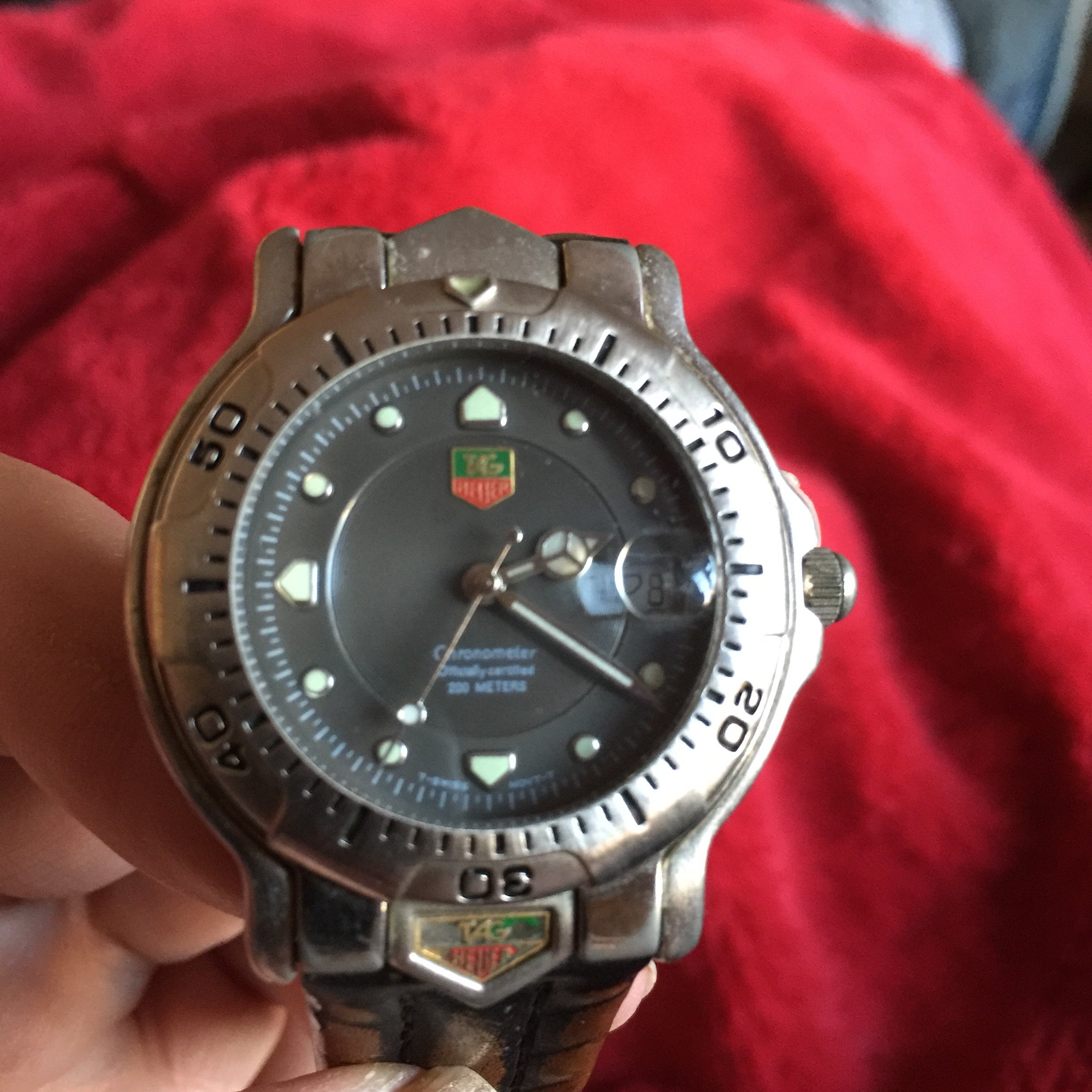 It's not a genuine watch unfortunately. It looks like a TAG Heuer 6000 series, but there are a couple of giveaways- for example, none of the 6000 series have a coloured TAG Heuer logo on the bottom of the case