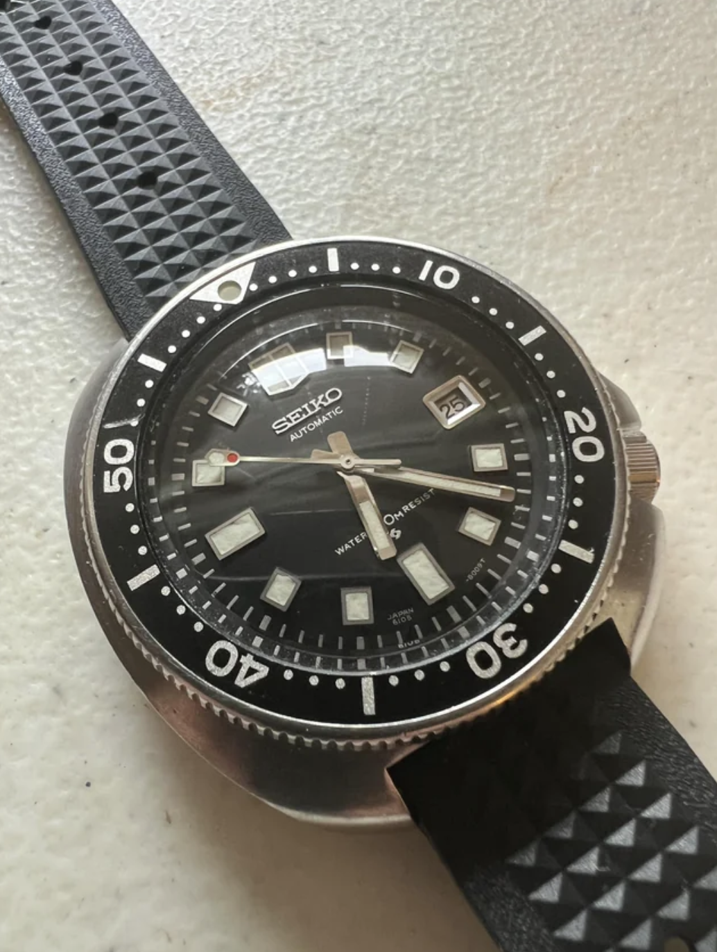 ·I've been a fan of the Seiko 6105 for a while and have owned an SRP777 and SPB151, but they didn't quite scratch the itch. I've been toying with the idea of getting the modern re-issue SLA-033, but I feel like it would be the same thing - almost a 6105, but not quite. So now I've started looking at vintage 6105's and this one has caught my eye. I know it has the less desirable "Resist" dial and non-horse shoe caseback, but nothing jumps out at me as being aftermarket. The seller says everything is original to watch except the crystal, which was replaced during a recent service. Admittedly, I know almost nothing about vintage Seiko's. So, would one of you fine experts mind weighing in on the originality and condition of this particular 6105?
