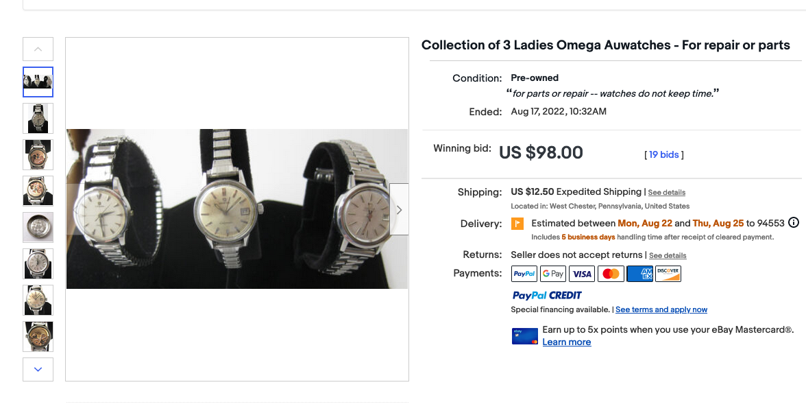 What am I missing here? Translated the listing and it says the watch is broken the watch is broken the watch is broken.