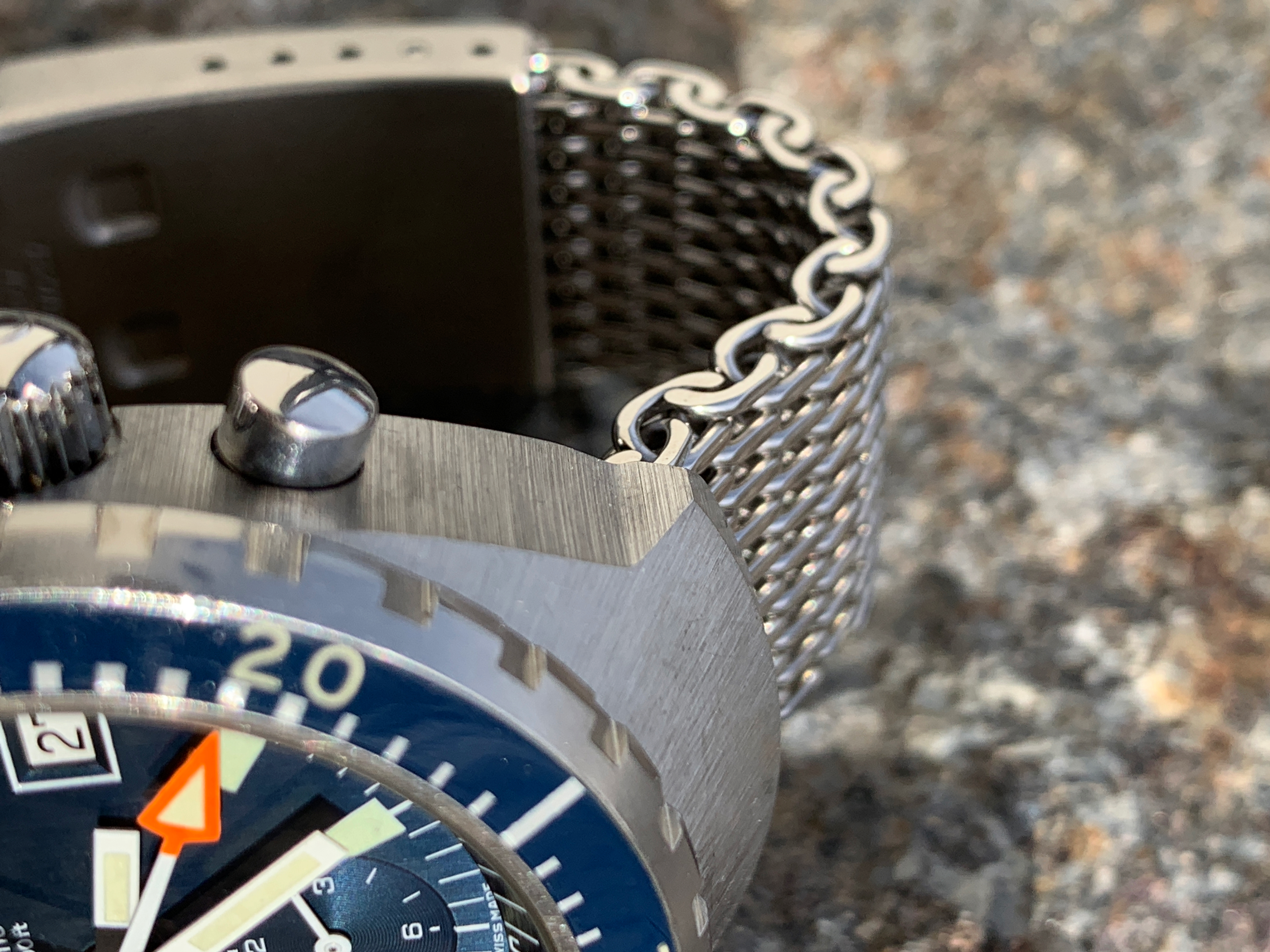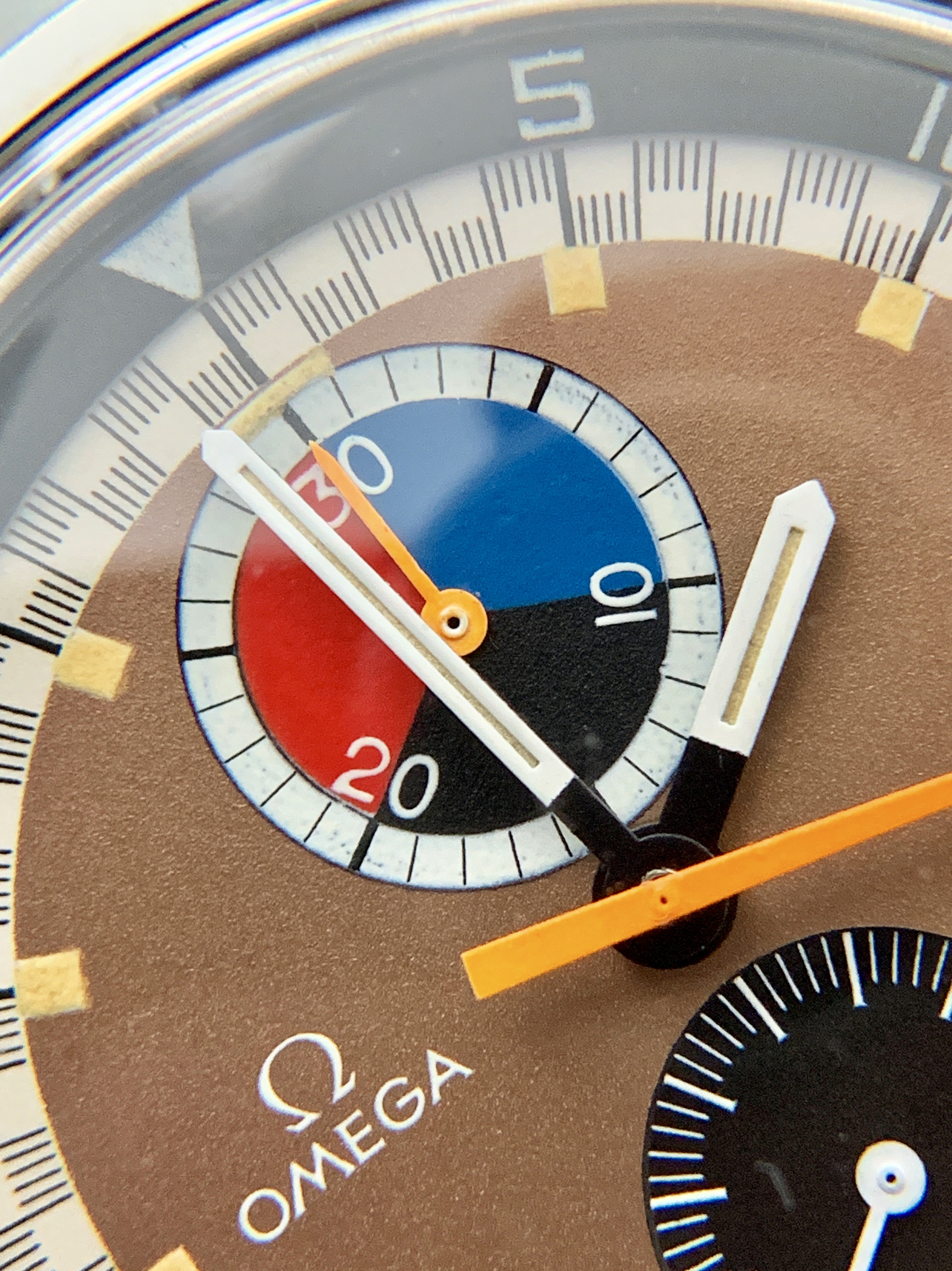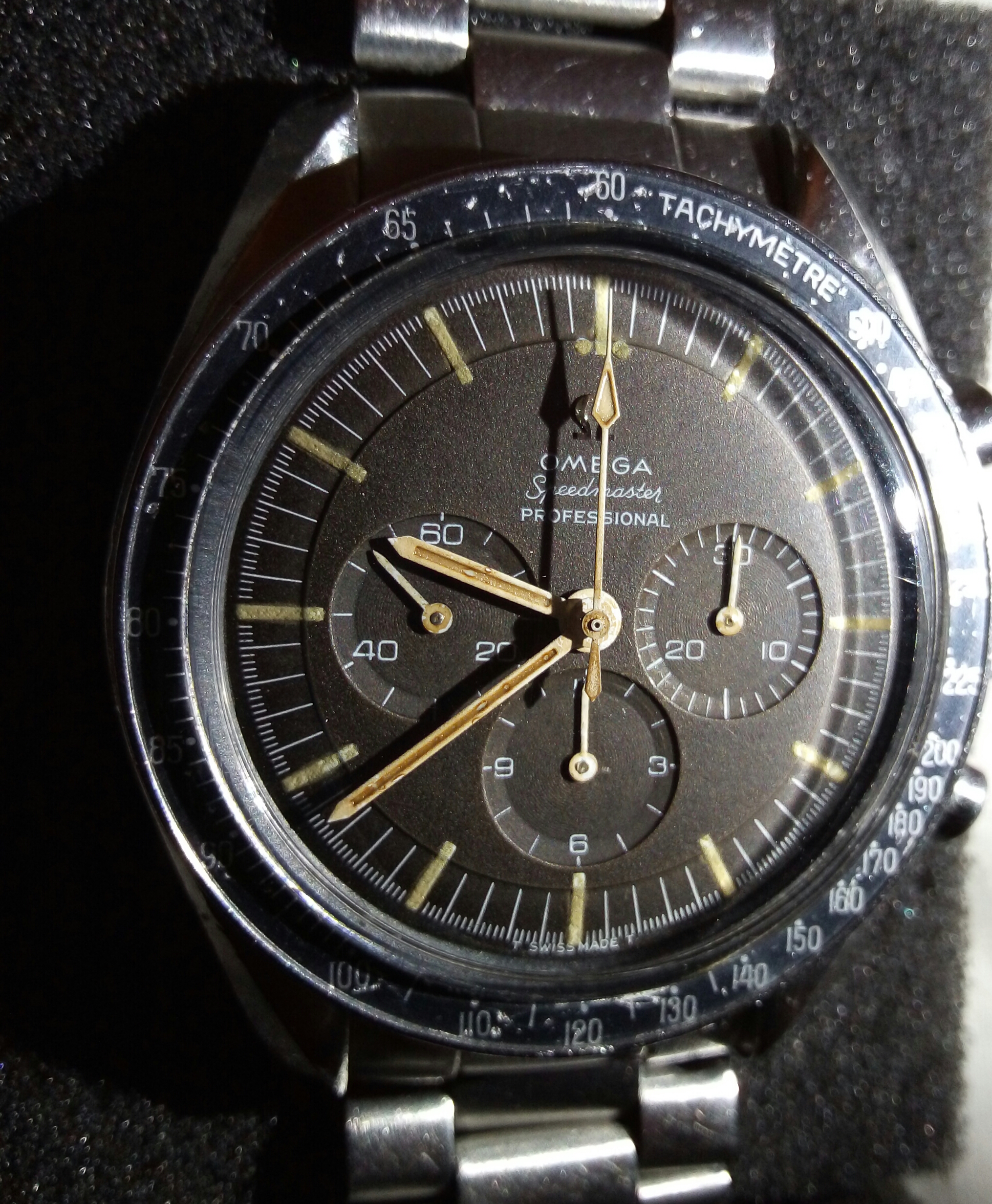 Most of the pictures I've taken, and posted on this forum, have been taken in artificial domestic light or just out in the sun light. That's OK for everyday shots, but for a sales post I need to show the detail of the case as it really is and also I need to try to demonstrate how different the brown dial appears depending on the light.