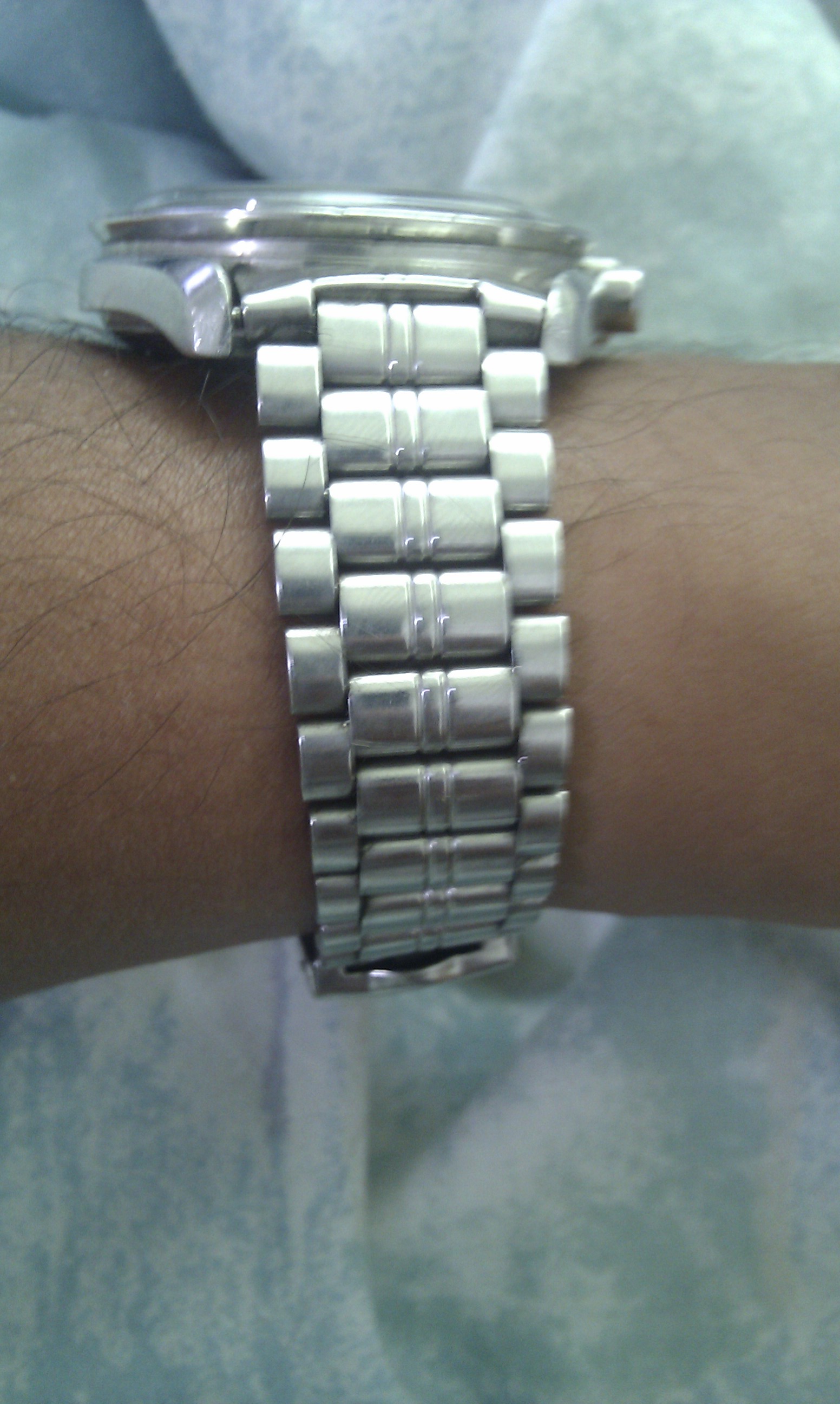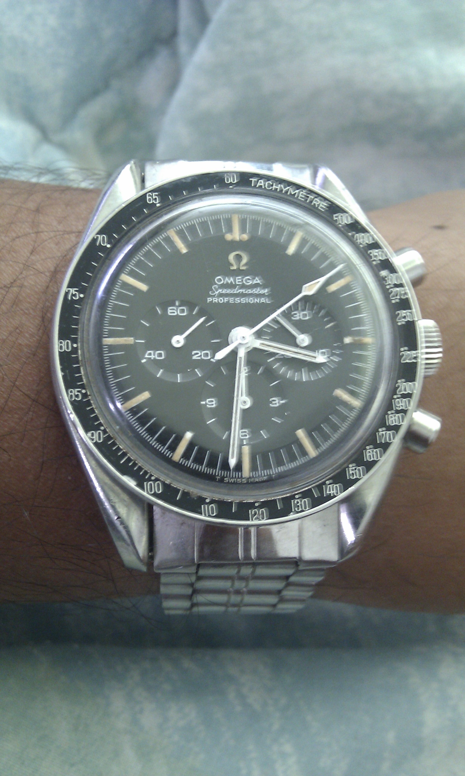 got it from my dad, he bought it in 75 when he thought it was the coolest thing to own the moon watch, always admired it since i was a child. hard to believe this watch is older than i am (30yrs). i'll consider replacing the bracelet but since dad's name is engraved on the clasp more than likely i wont. what i would like to replace is the tachymetere bezel and if possible to replace/ restore the luminous markers.