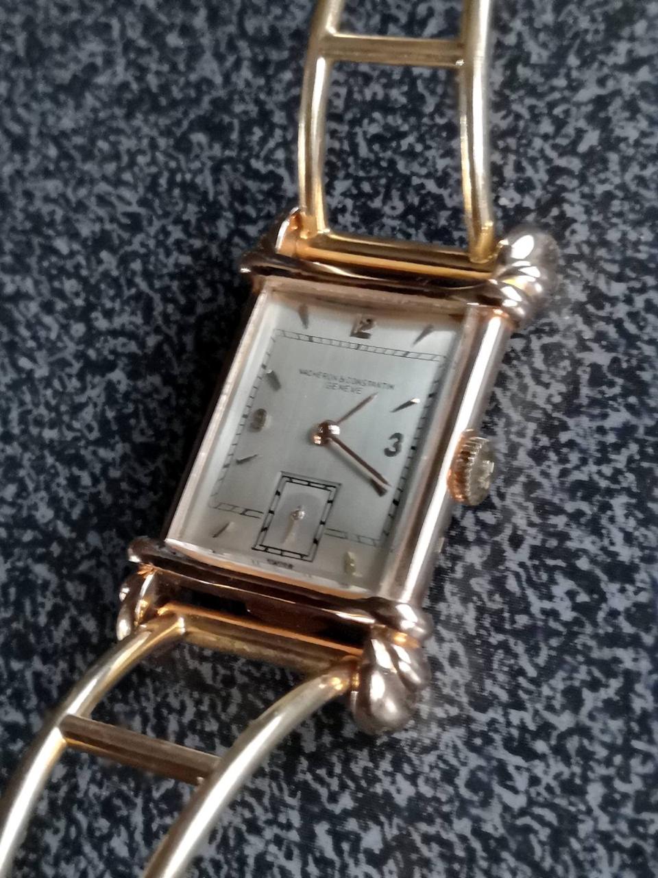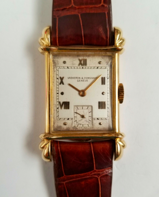 "For sale is a Vacheron Constantin yellow gold rectangular manual-wind men’s wrist watch with