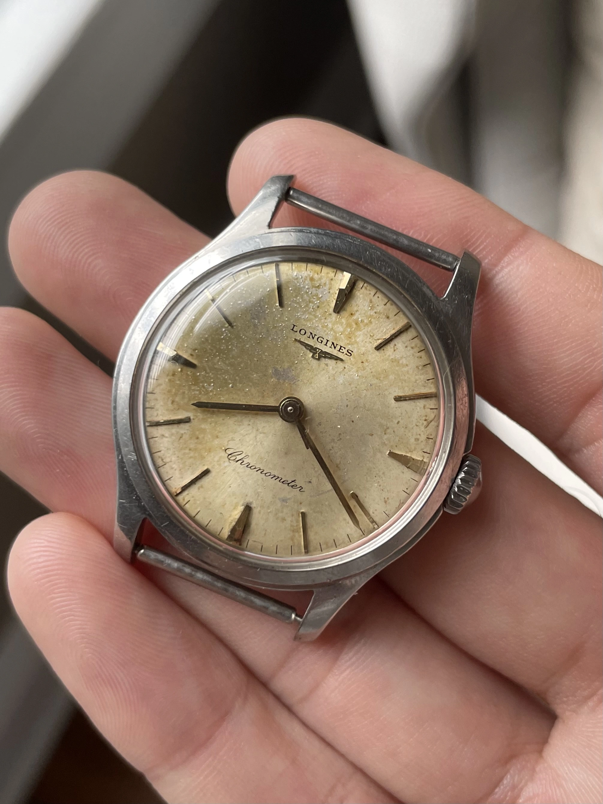 ·I'd love to give this special movement a second chance at life. Unfortunately the case was surely scrapped for melt long ago, but at least the movement and dial were 'spared'. Thanks to @Bill Sohne and his identical situation, we know the ref. 6264 steel case will work. I'm curious if anyone thinks other references, in either gold or steel, might also house it as perfectly? I'm also in need of a replacement sweep hand since after years of exposure this one was compromised and broke while handling - i'd be grateful if someone could point me in the right direction there as well.