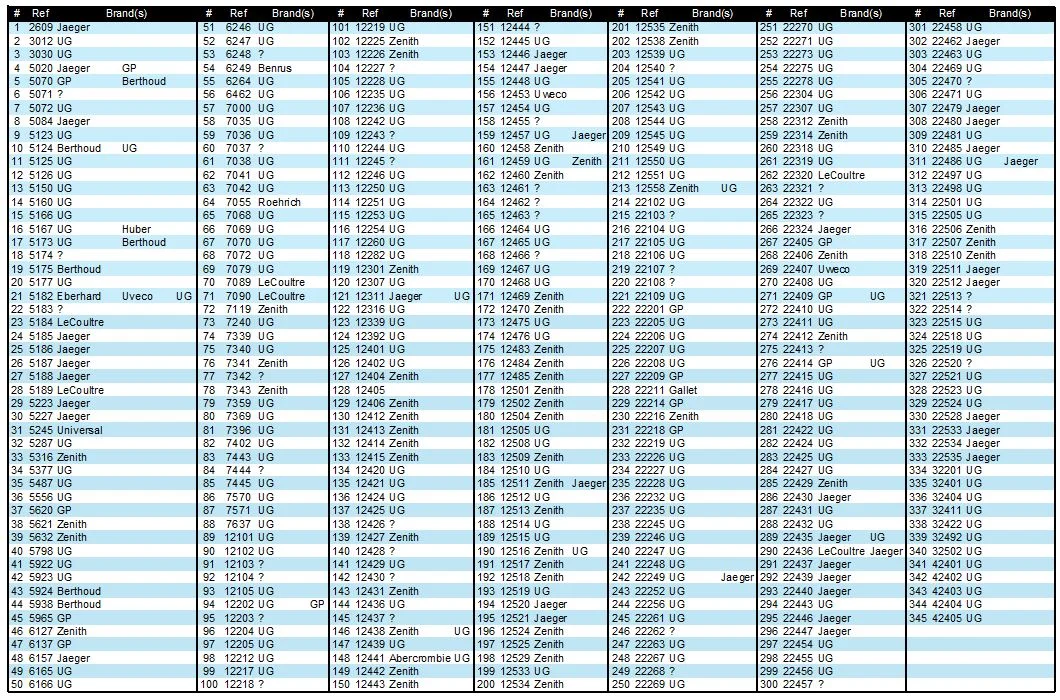 ··not the sharpest pencil in the ΩF drawerNeed your help. I'm trying to make a master table of UG and derivates chronograps with a serial between 600k and 1 mio. I have large databases with numbers but from some reference I only know 1 or 2 examples (which is not enough to use the tank formula). Others have managed to evade me (assuming they were produced at all).