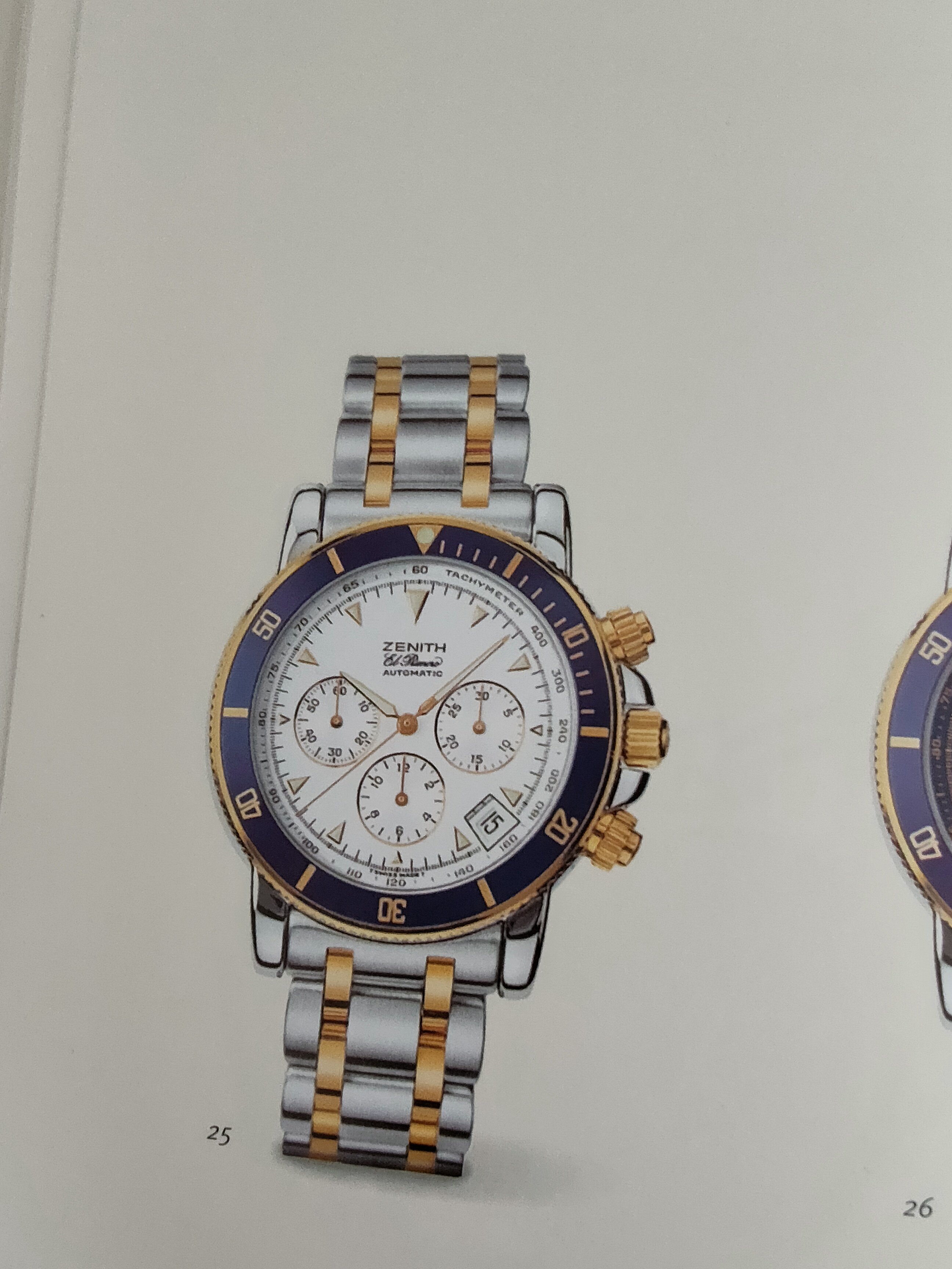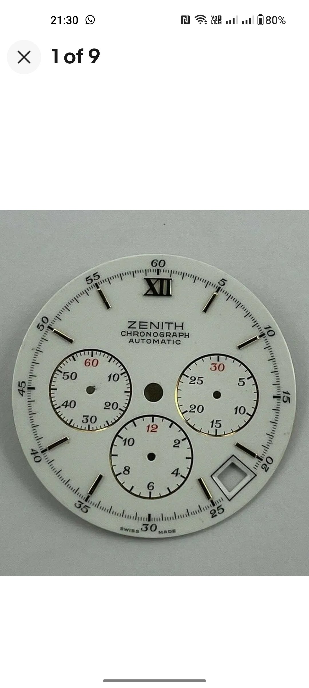 A similar Zenith dial but CHRONOGRAPH on dial, not El Primero is also attached. Hour markers are different here.