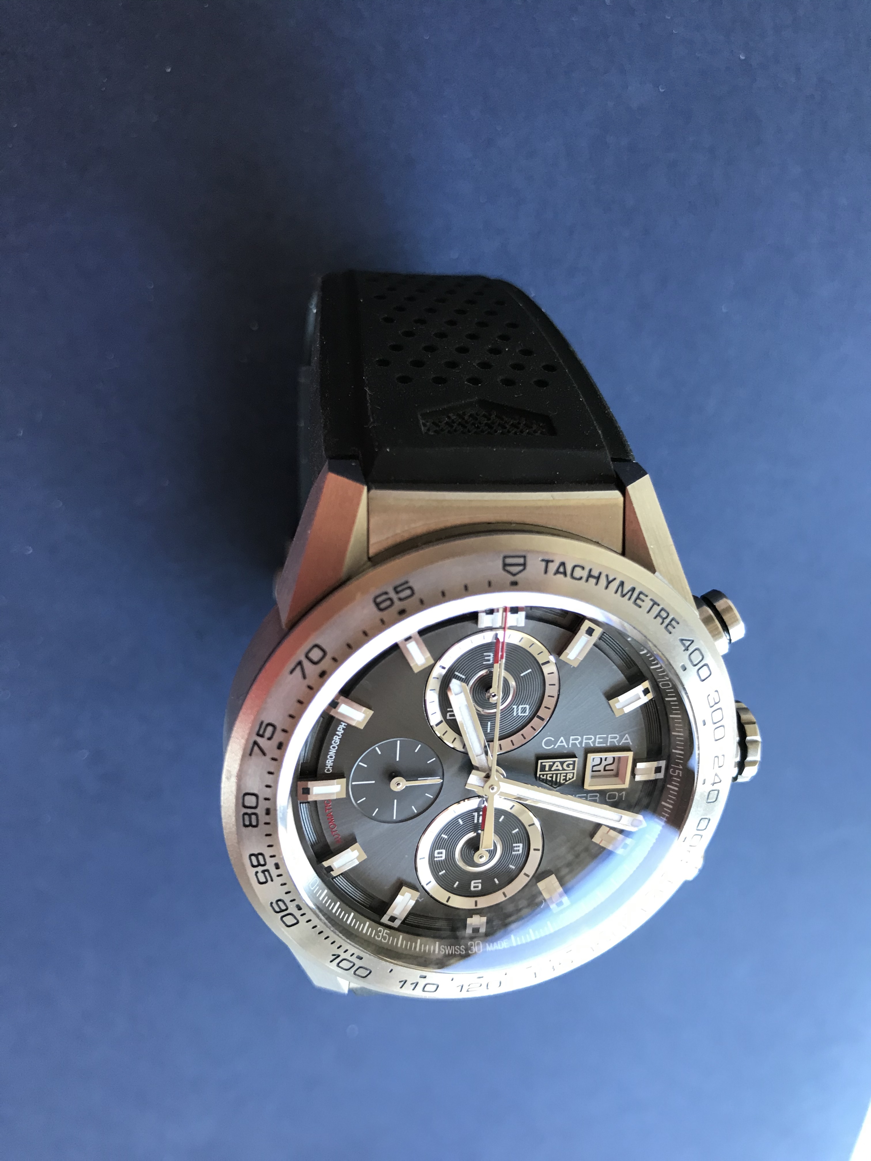 It has the black rubber strap with holes and I really want to give it a new look with the stainless steel with black ceramic through the middle.