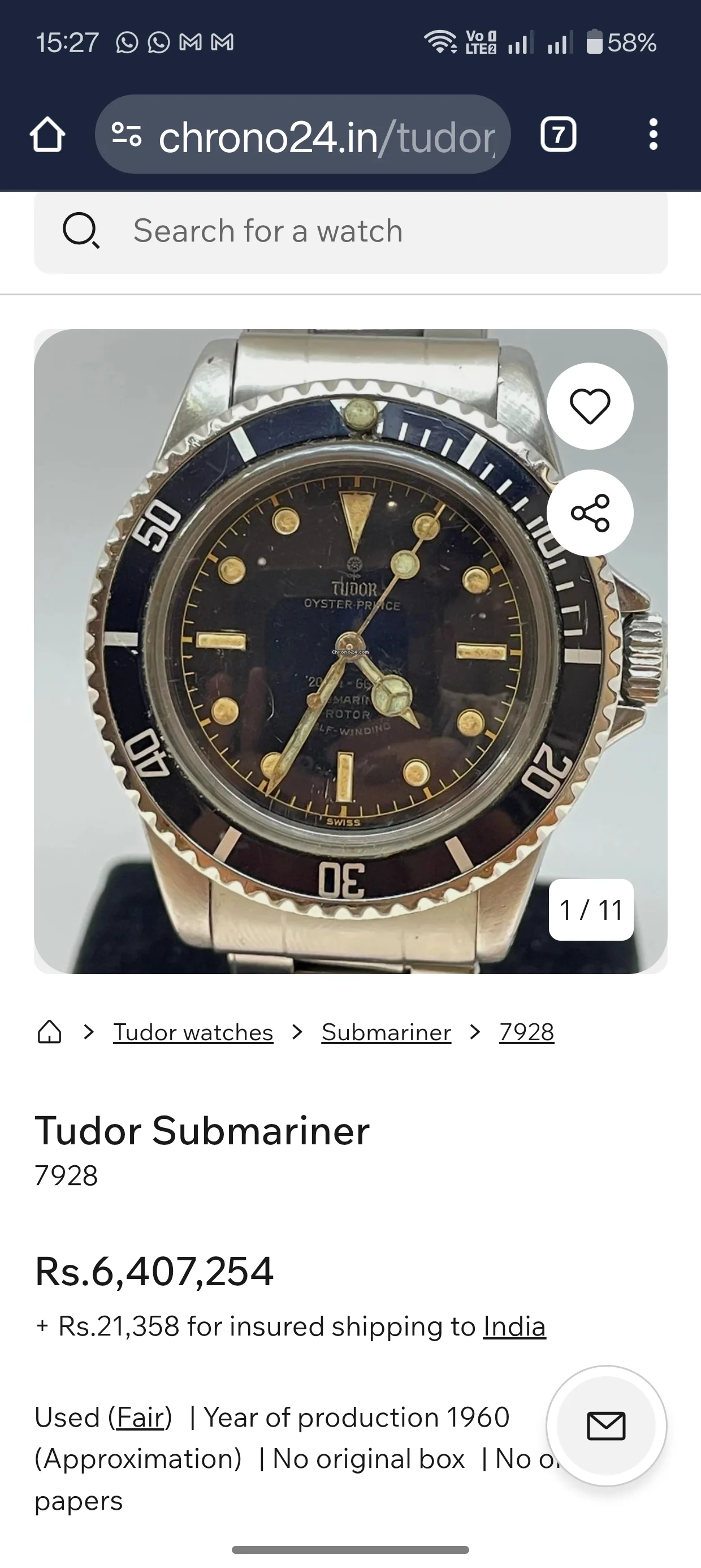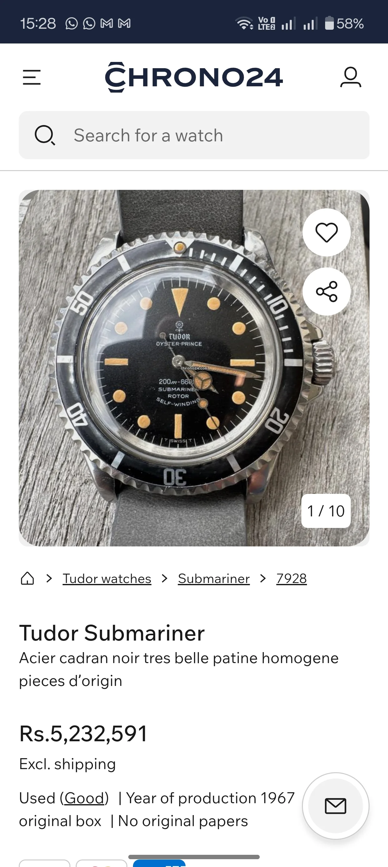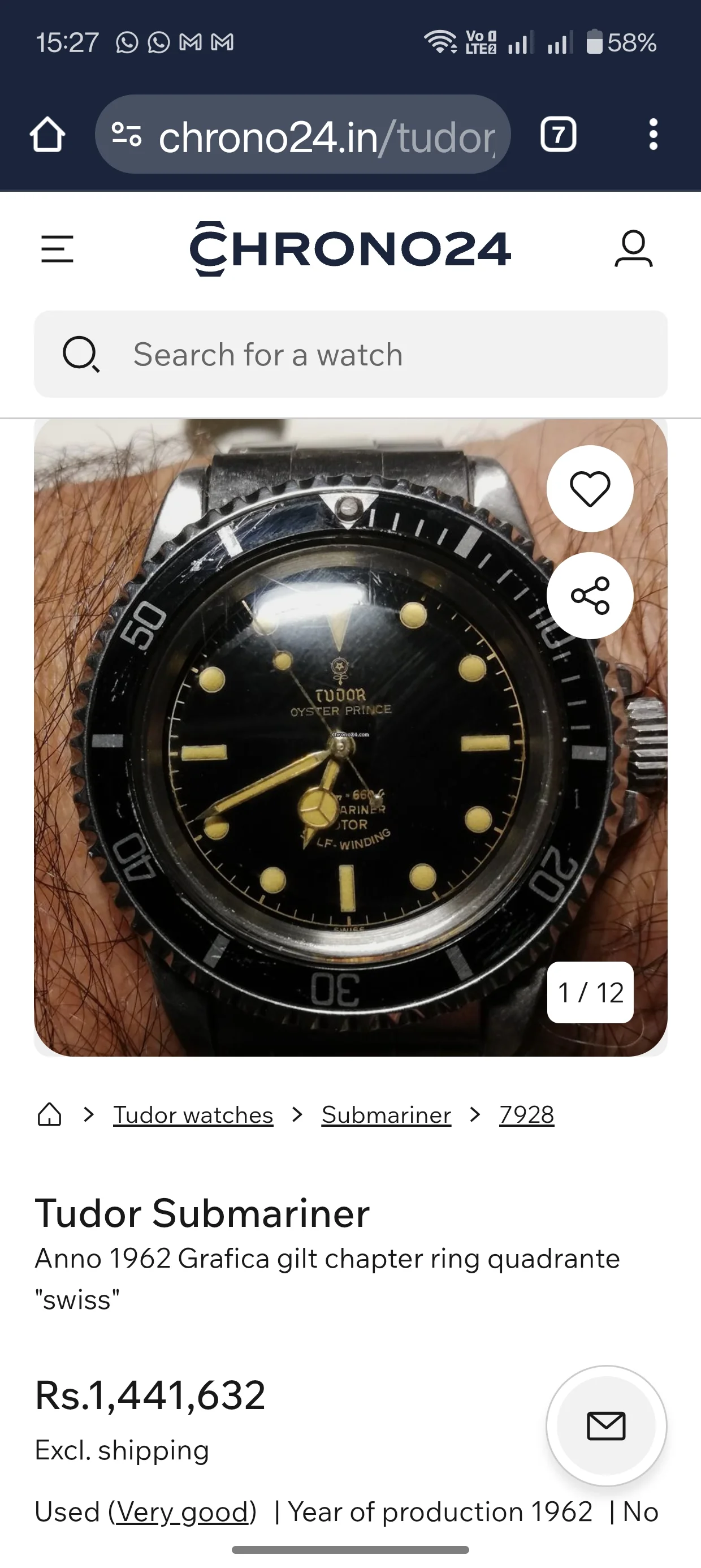 ·I have this beautiful Tudor Oyster Prince Submariner Ref 7928 in what someone told me is a "pumpkin dial". I was trying to see some Chrono listing of similar dial for some estimation of prices but it was all over the place!