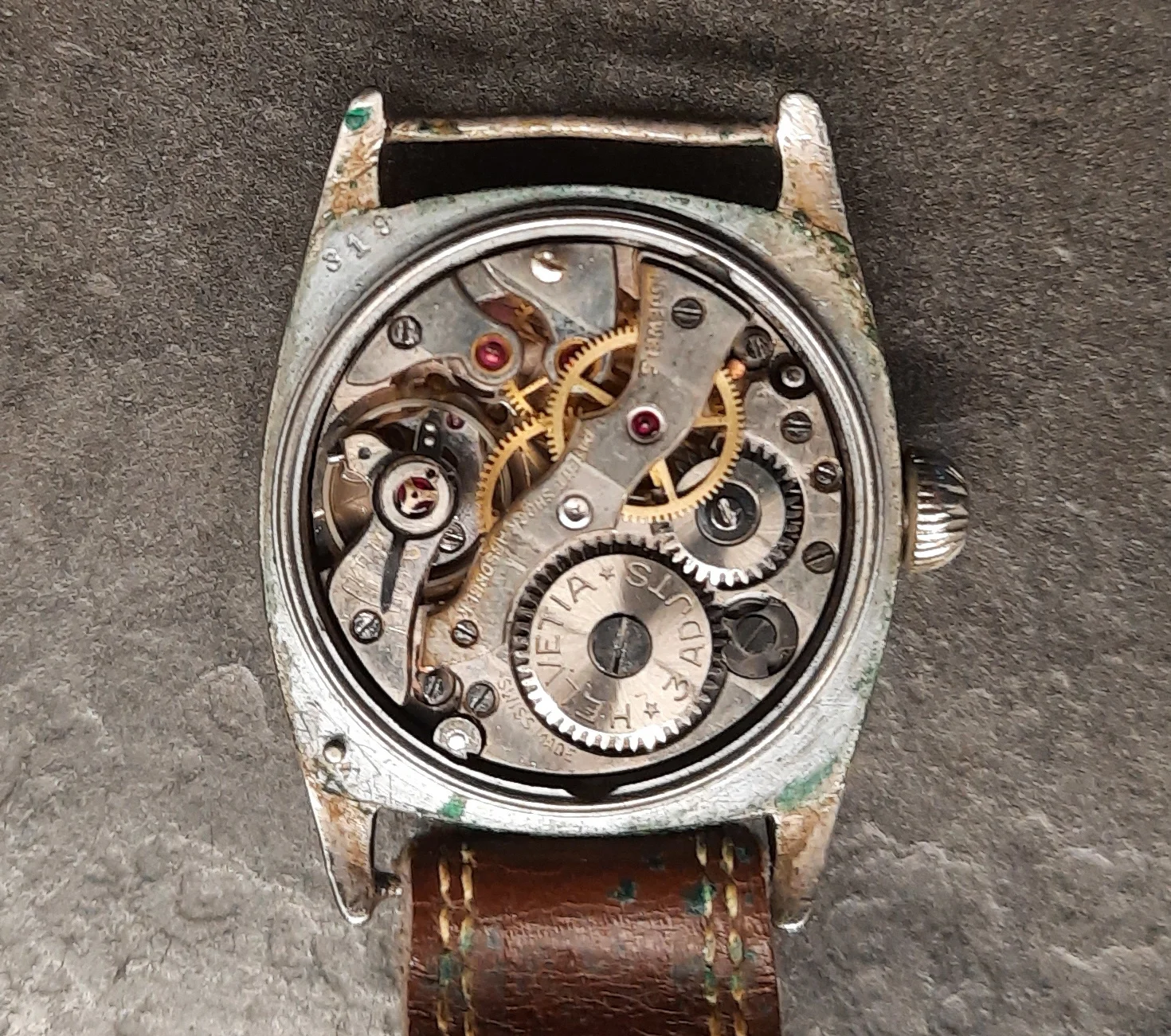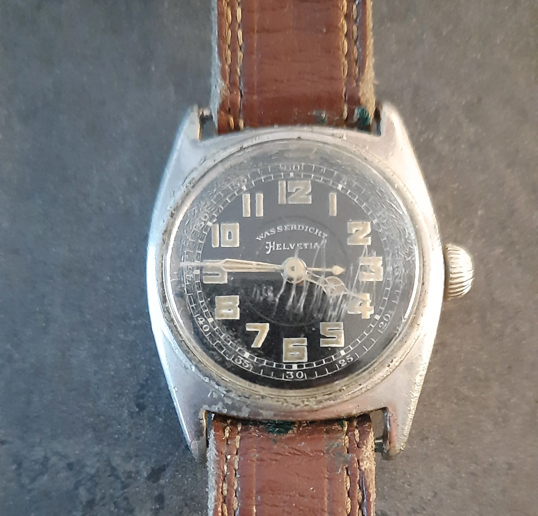 I own a Helvetia watch from my grandfather. I have been trying to identify its provenance, but I can't find pictures of a copy with such a dial anywhere. There is no serial number on the envelope, only the number ‘819’ stamped under the envelope lid.