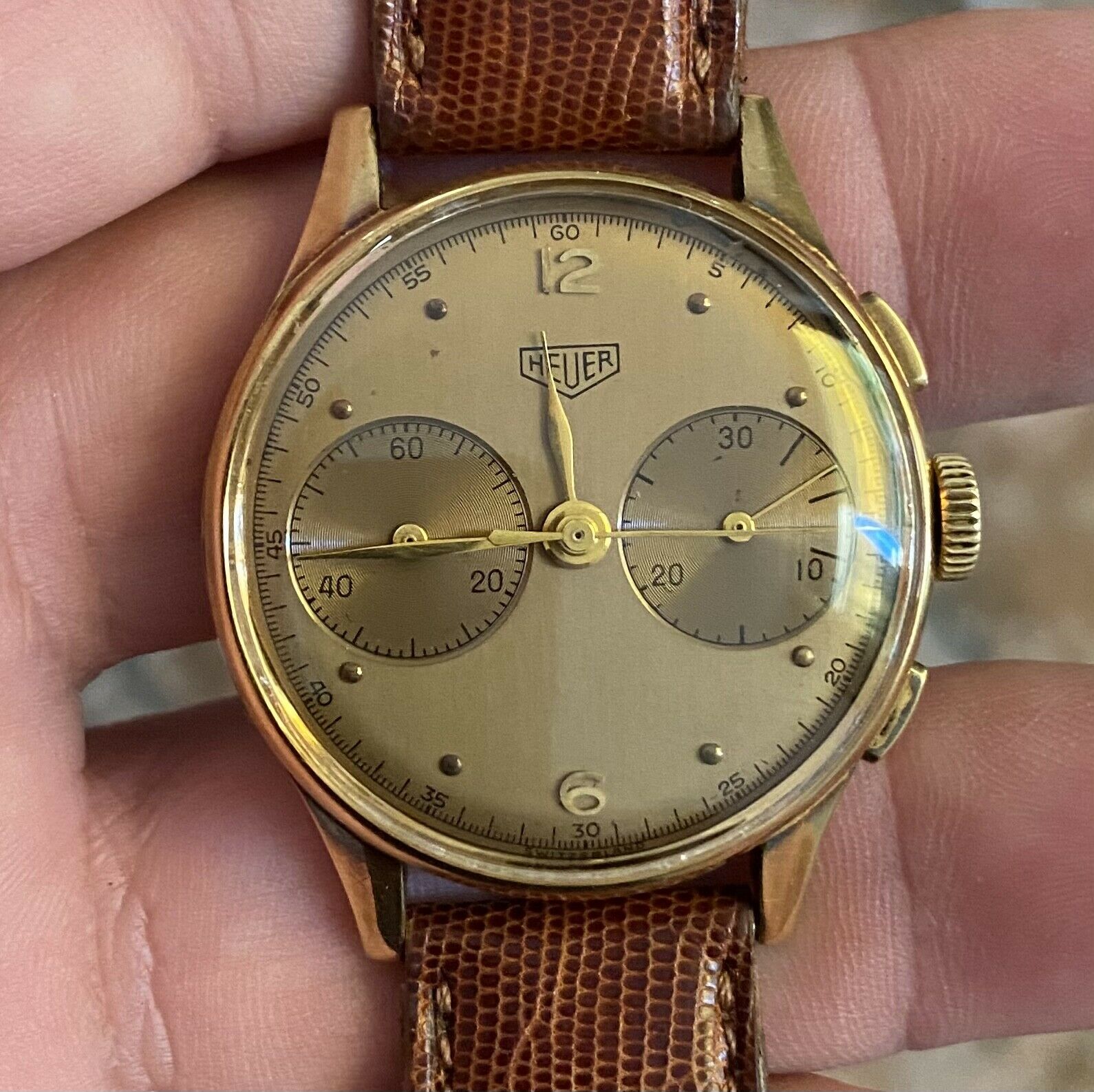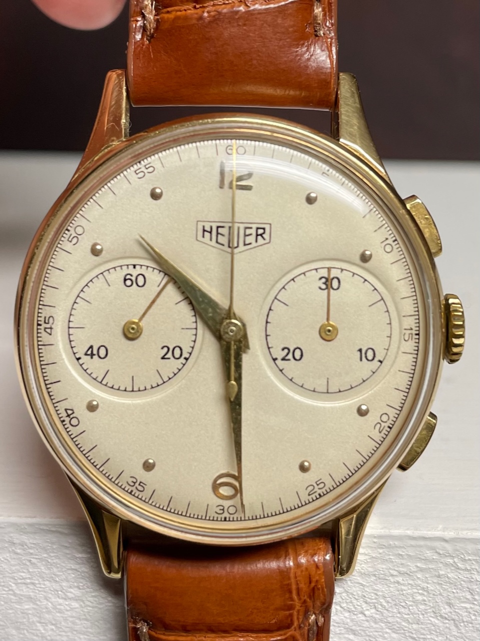 ·Hi OF Vintage Collectors! I recently jumped into vintage watches and have the opportunity to purchase a Heuer Big Eyes, which I think is a 418, in 18k gold with the Valjoux 23 movement. I trust this seller, since he sold me a few nice watches before, but he disclosed some issues with this Heuer. Mainly, the dial has been refinished and the hands replaced. I always wanted a watch with the Valjoux 23, so the price he was offering mainly take this into account.