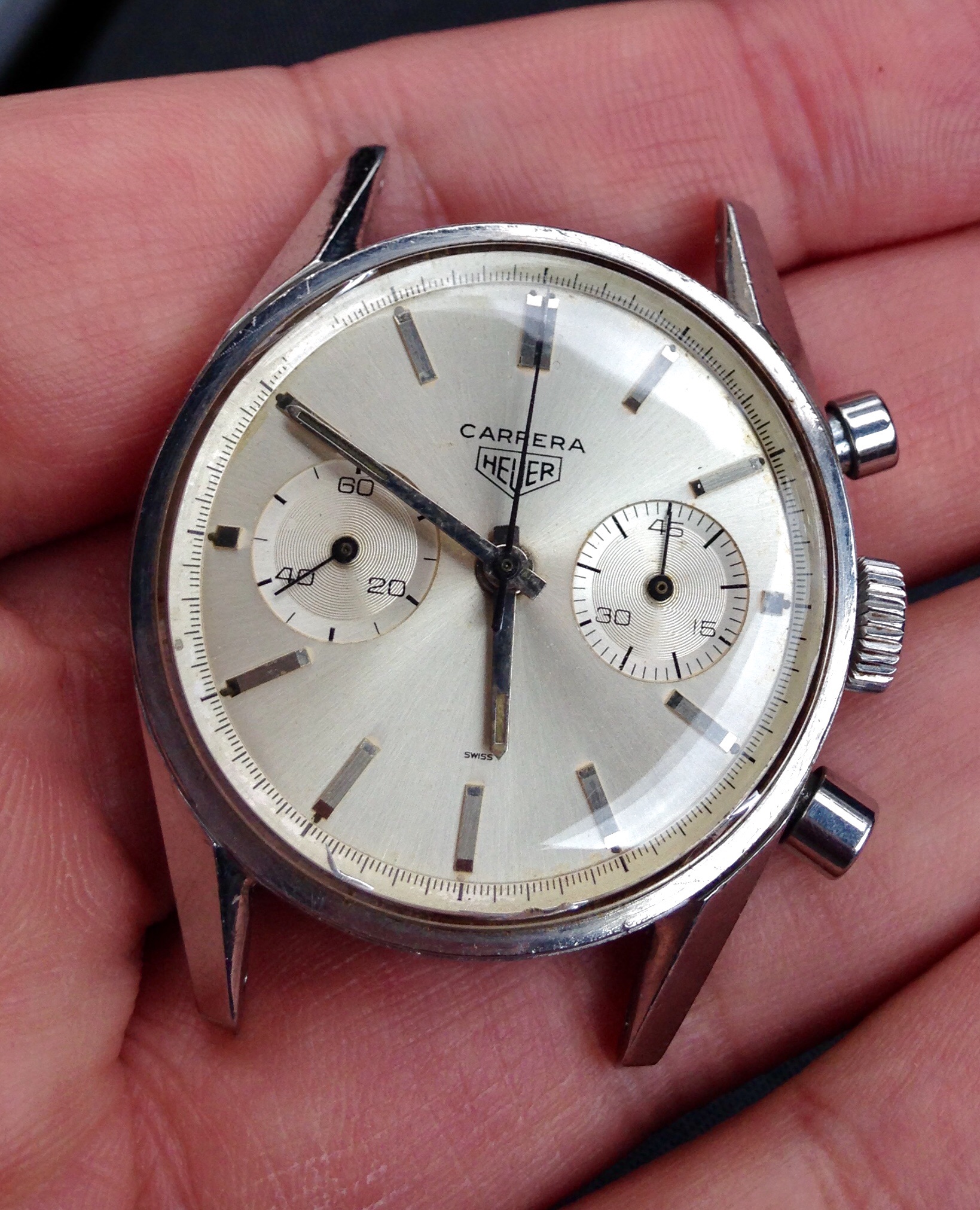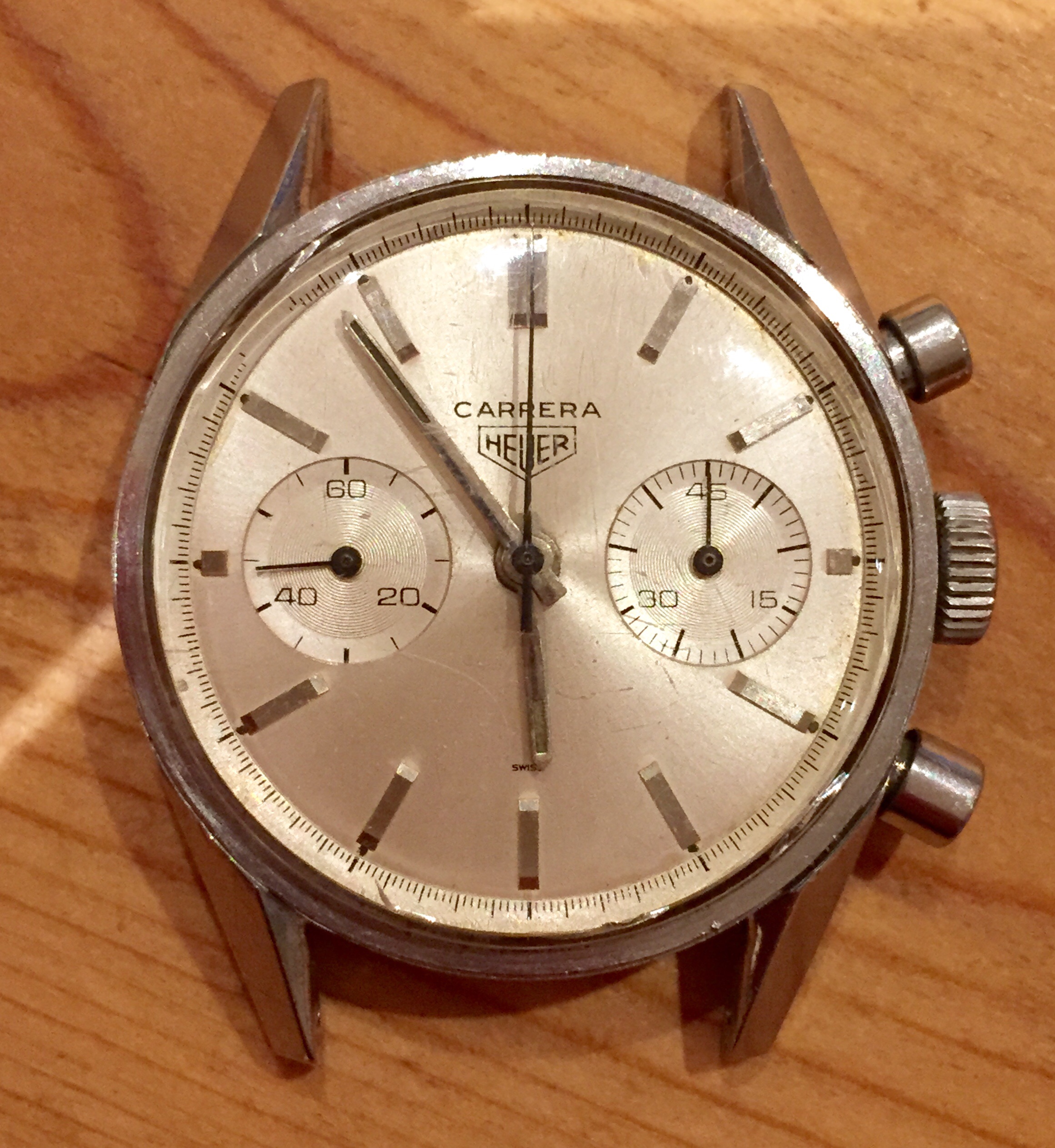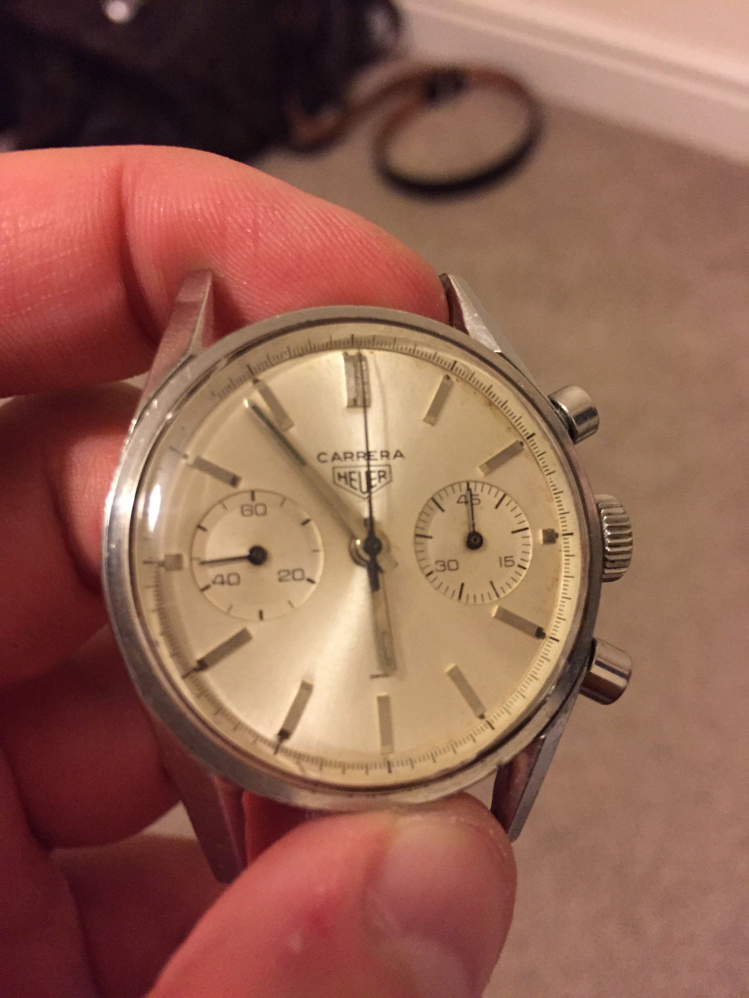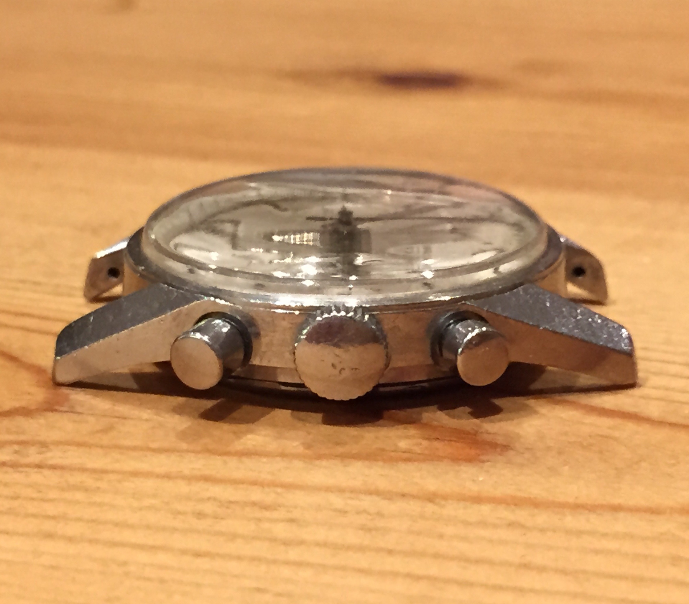 It's found its way to me via the grandson of the original owner. It's well dinged up but I believe unpolished and I think it'll come up lovely after service. Most of the blemishes are on the crystal not the dial. There ate some losses to the minute track on the rehaut and the crystal is cracked, which I've heard are a pig to find. At least one of the pushers is also wrong.