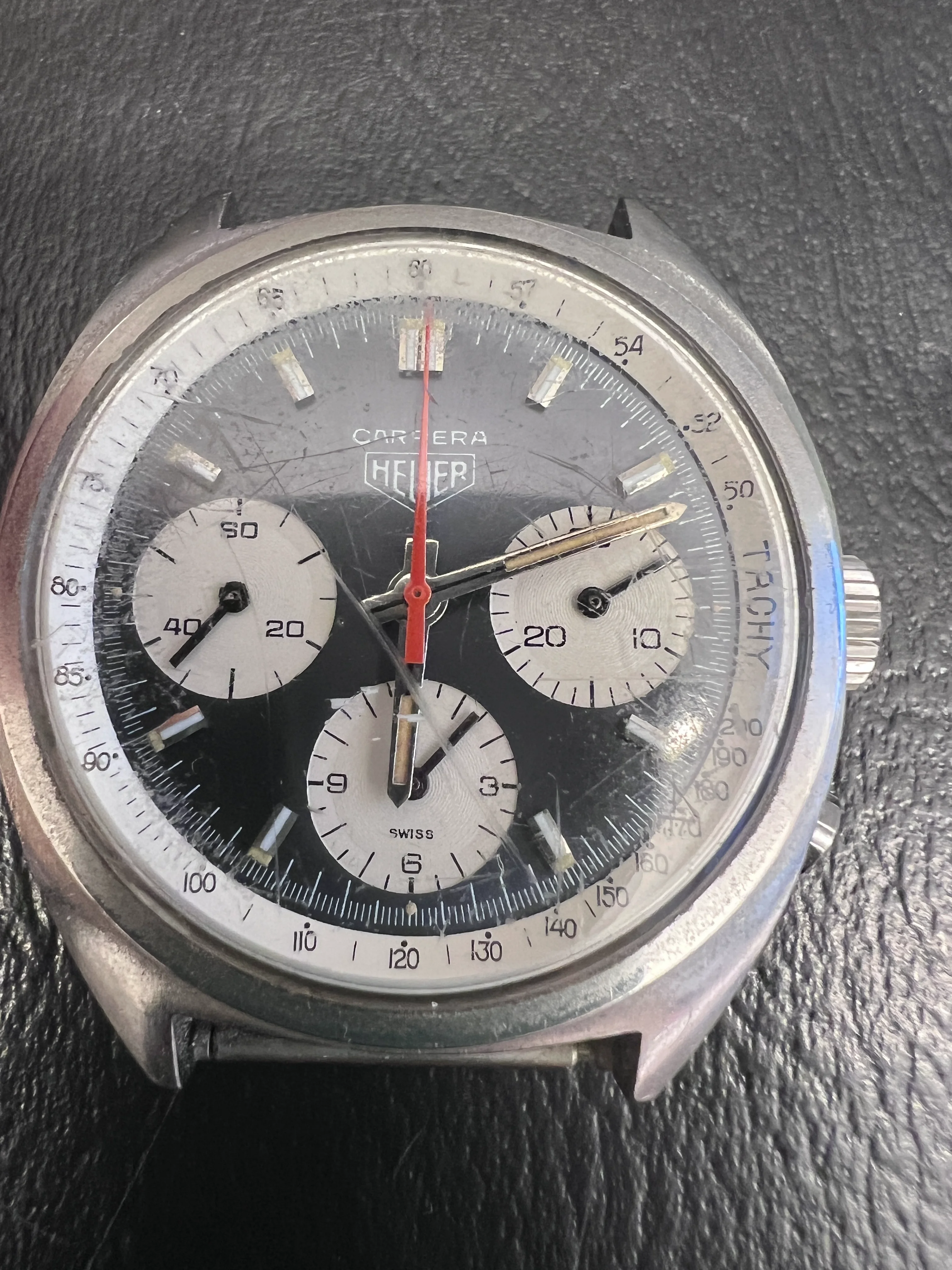 The crystal was very scratched, but looking at the pictures (for a couple of hours....), the dial looked very very promising.