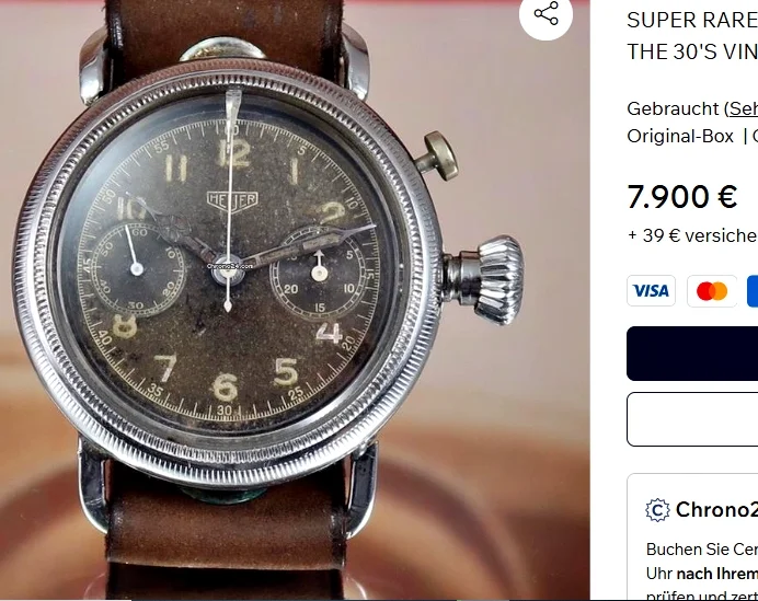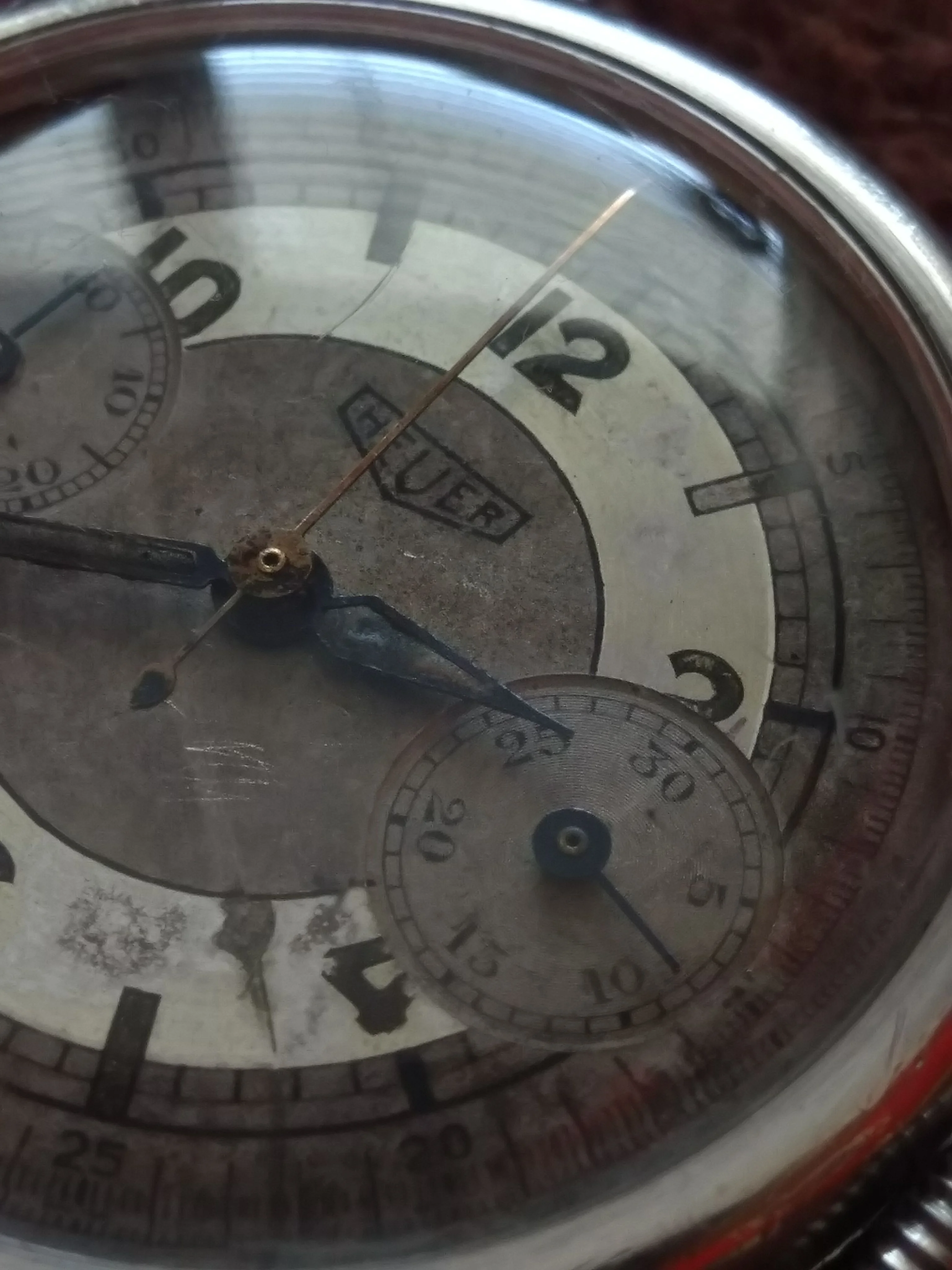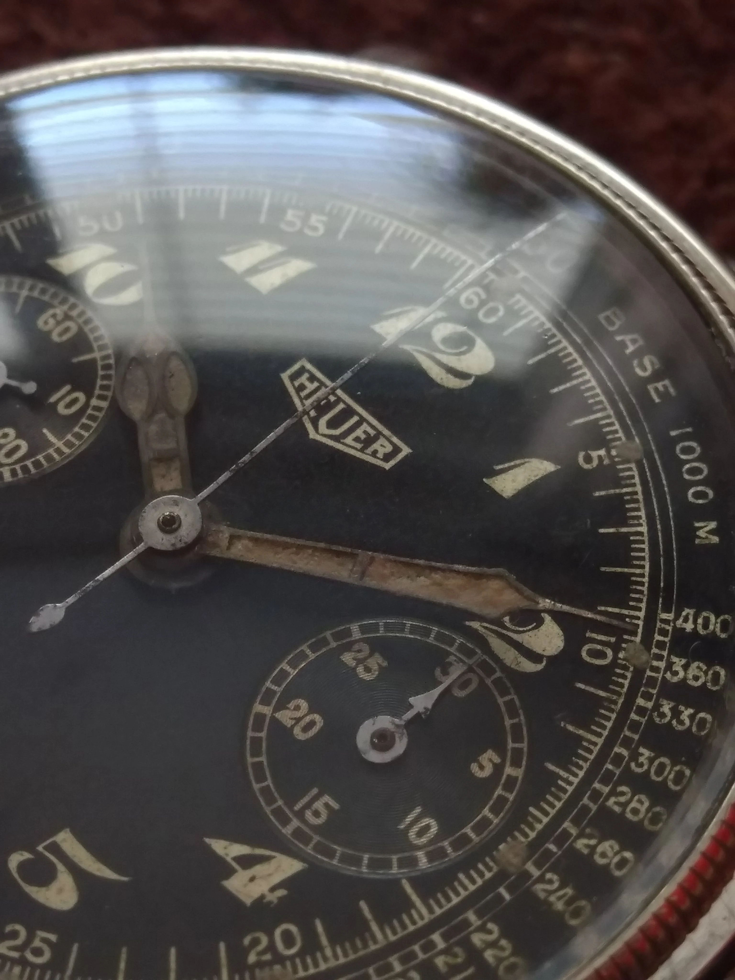 This find actually is a different animal and blown my mind. It deals obviously with the Heuer 1930s flieger monopusher chronograph. Since there are not many pre-reference pieces, I am aware of just handful of them, it is very hard to make a qualified comparative analyses. There are many similarities but oddities too among available references.