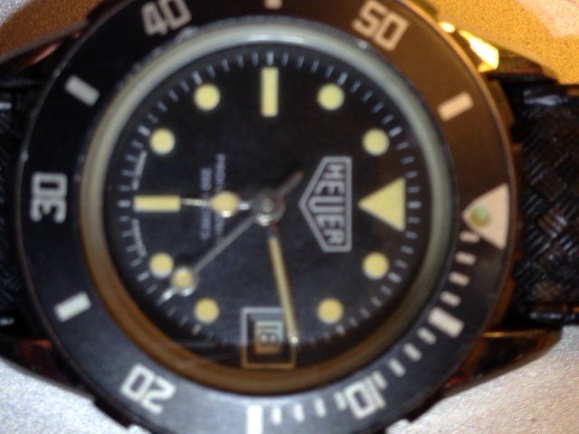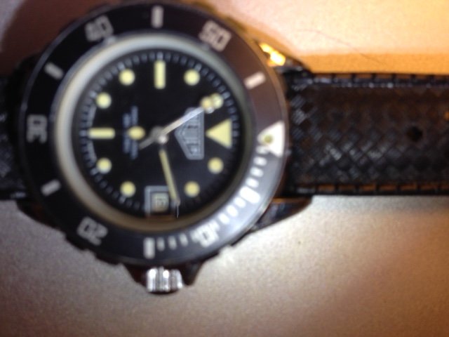 ·I purchased this 28mm diver for my wife several years ago and was curious if anyone knows anything about this cool little watch. I believe it is a 1979 model. I know Monnin used to make divers for Heuer, but I have been unable to find any literature on them making a ladies diver. The reason I am relatively certain that it was made by Monnin for Heuer is because at the very bottom of the dial, it reads "Made in France." Additionally, it reads "200 Metres Professionnel" Any information you have on the watch would be much appreciated... Any notion of the value? Sorry for the poor quality pictures.