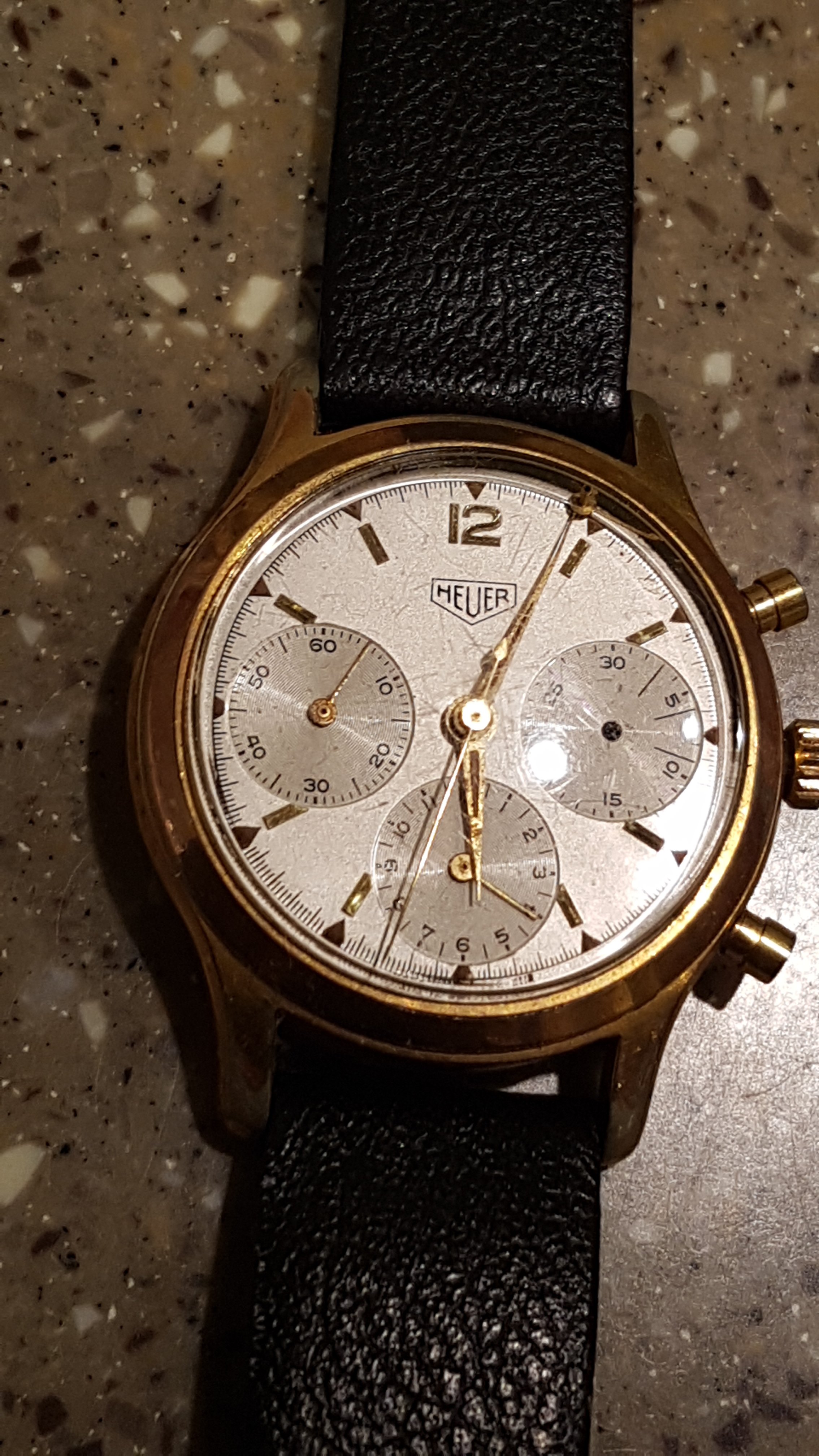 I believe its a 2444 I will take pictures tonight. I want to get the watch repaired I am based in England so if any one could recomend a trusted repairer please? The case has marks consistent with its ages its a gold plated case with a gold face and probably 20 years ago a local repairer fixed the watch (confirmed model age and authenticity to me) but one of the chrono hand has since fallen off and is loose on the face.