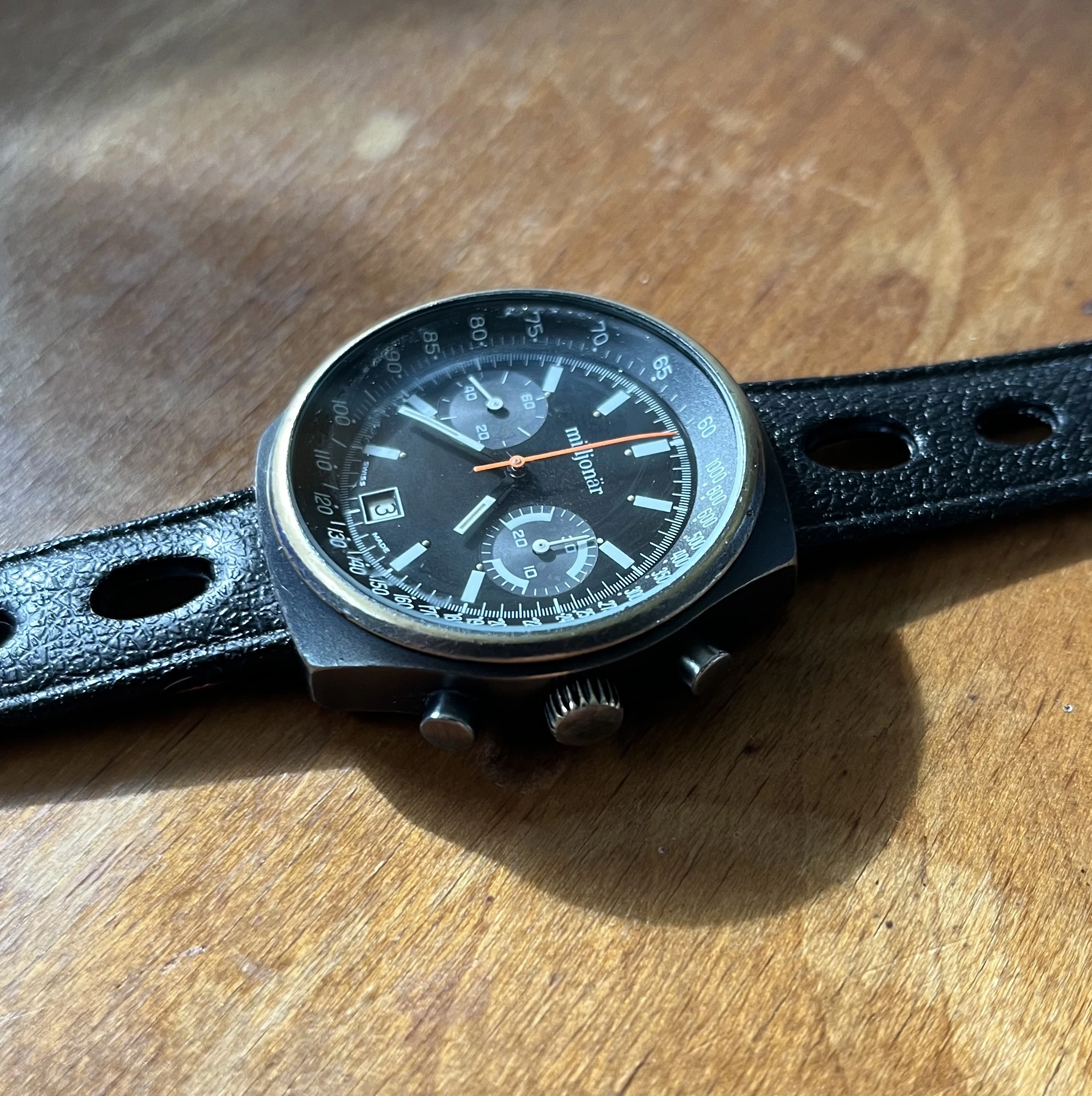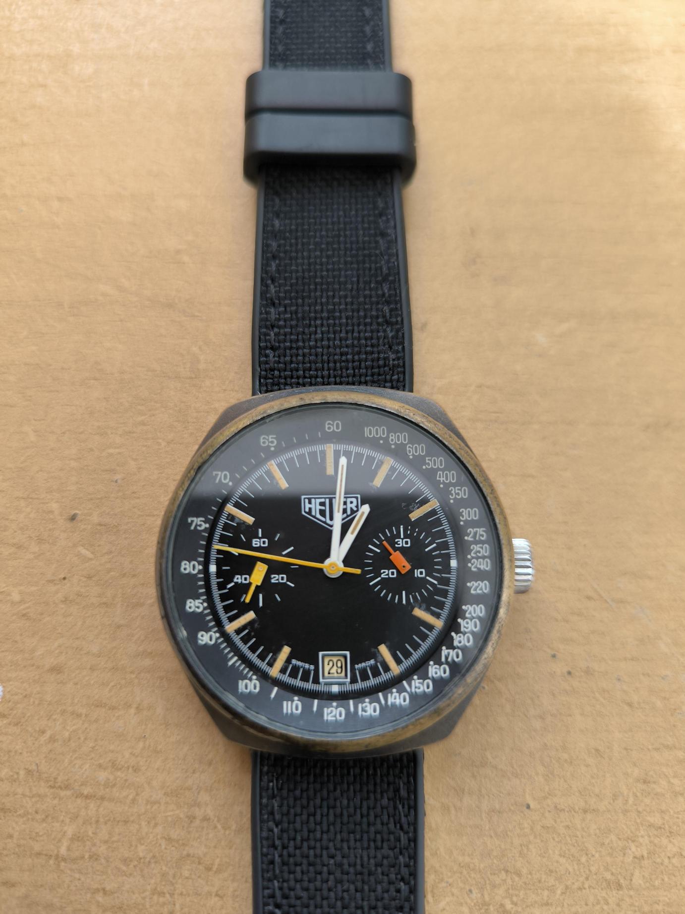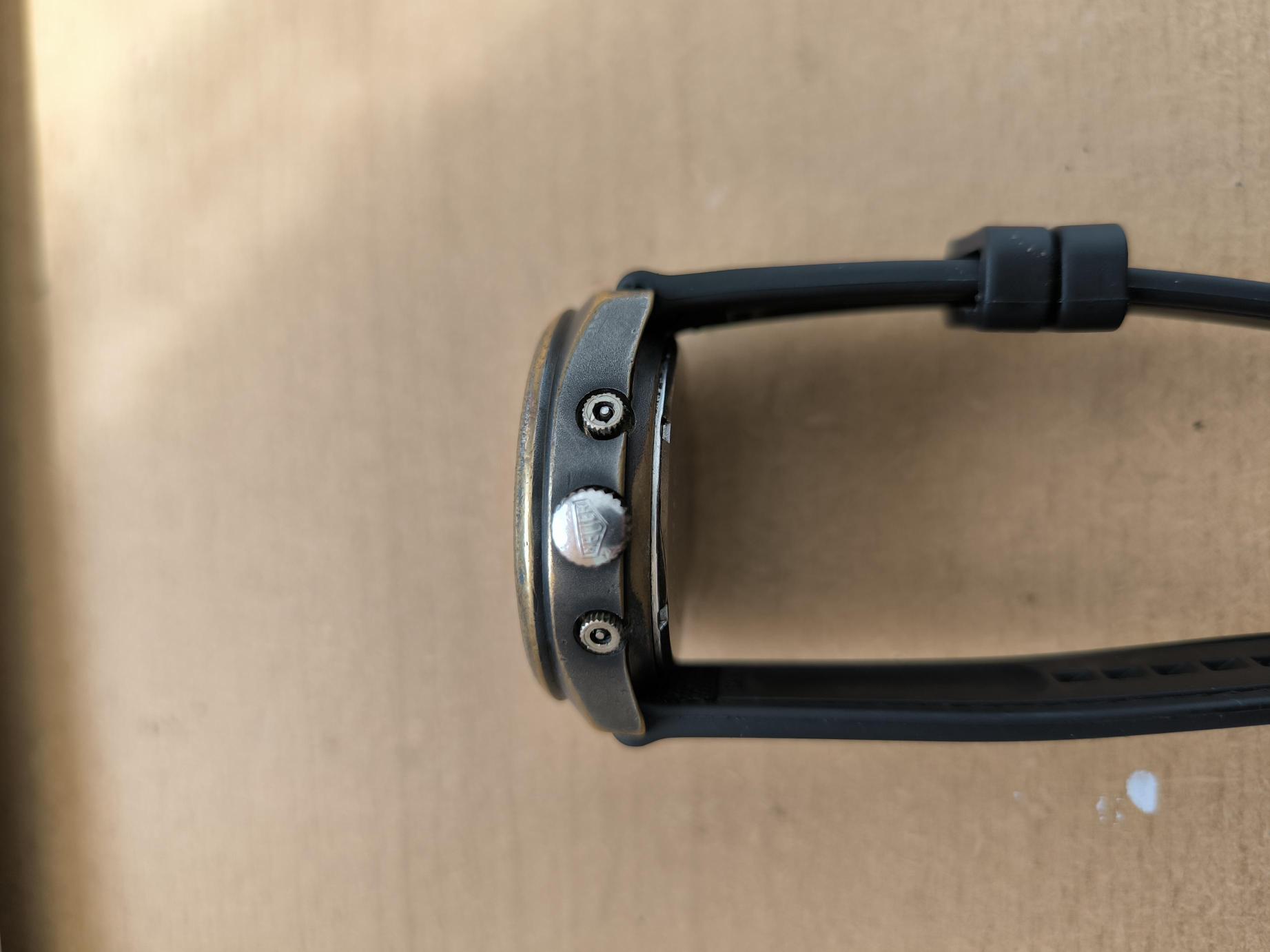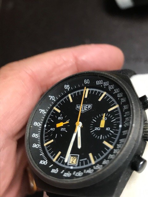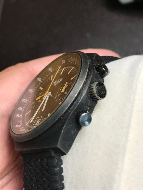 I'm mostly active over on the Omega forum but am a huge fan of Heuers and Tags so I thought I would run this watch by y'all. Gotta local guy selling me a package deal of two old Rolexes and this Heuer and I just don't want to get stuck with the Heuer. I'm buying the package deal to keep the Rolexes and this watch will end up standing me at $1400. Sorry for the quick snap shots but the thing is actually real clean and original and that's just dust on it in the pics. Works fine and the movement is clean as well. Whaddaya think? I am not a big fan of PVD watches so it's gonna have to go if I make this deal. I just don't want to be stuck with it and it's difficult to find reliable values on this model.