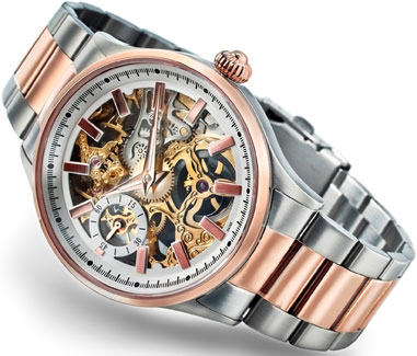 Its a rose gold plated and steel, mechanical manual winding skeleton watch from the 'TITAN' company. Titan is the only large Indian manufacturer to rise up after the fall of HMT. They initially concentrated on quarts watches.Titan is a subsidiary of the TATA group of companies, the pioneer industrialists of free India. This particular model was from their early line up of mechanical watches which came out when people began to understood the romance and charm of mechanical watches and the 2nd era of mechanical watches came about.