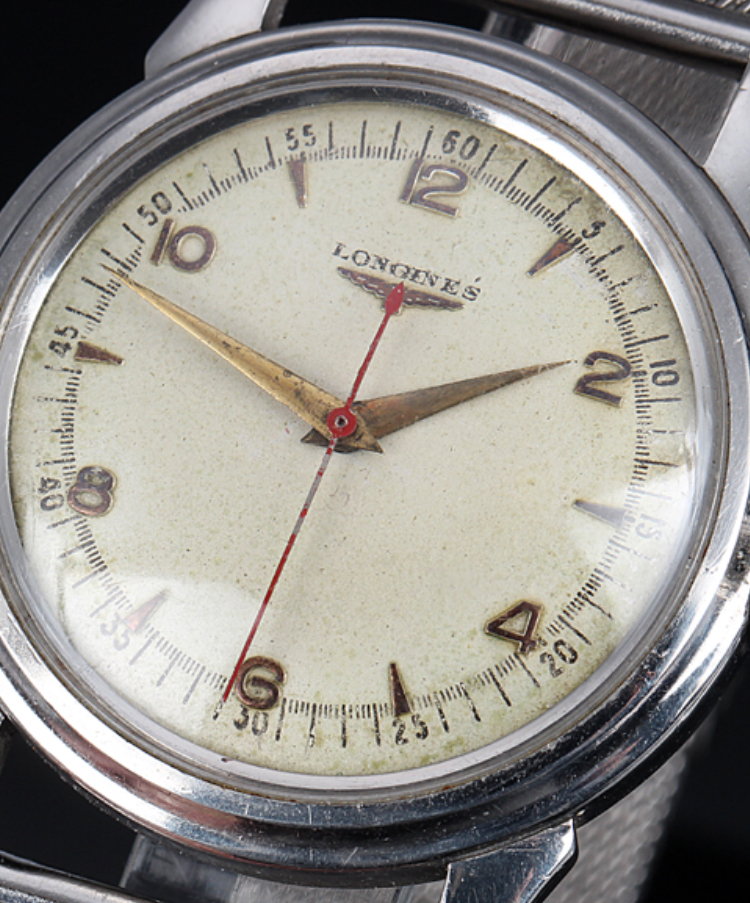 The minute track is printed too small by an incompetent restoration process. There is no reason that an original Longines dial would have the markers sitting ontop of the minute track on the lower half of the dial and the top half the minute markers are inside the minute track. The minute track is too small and not centered. Very poor old redial.
