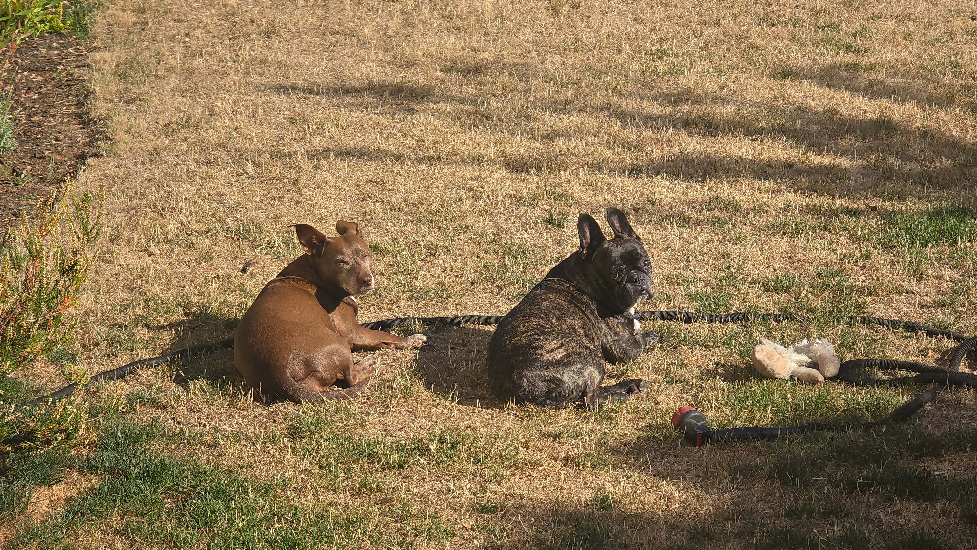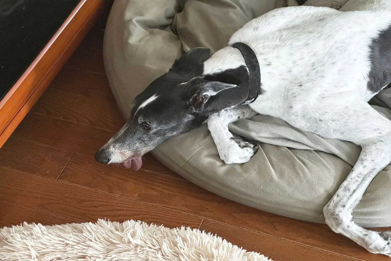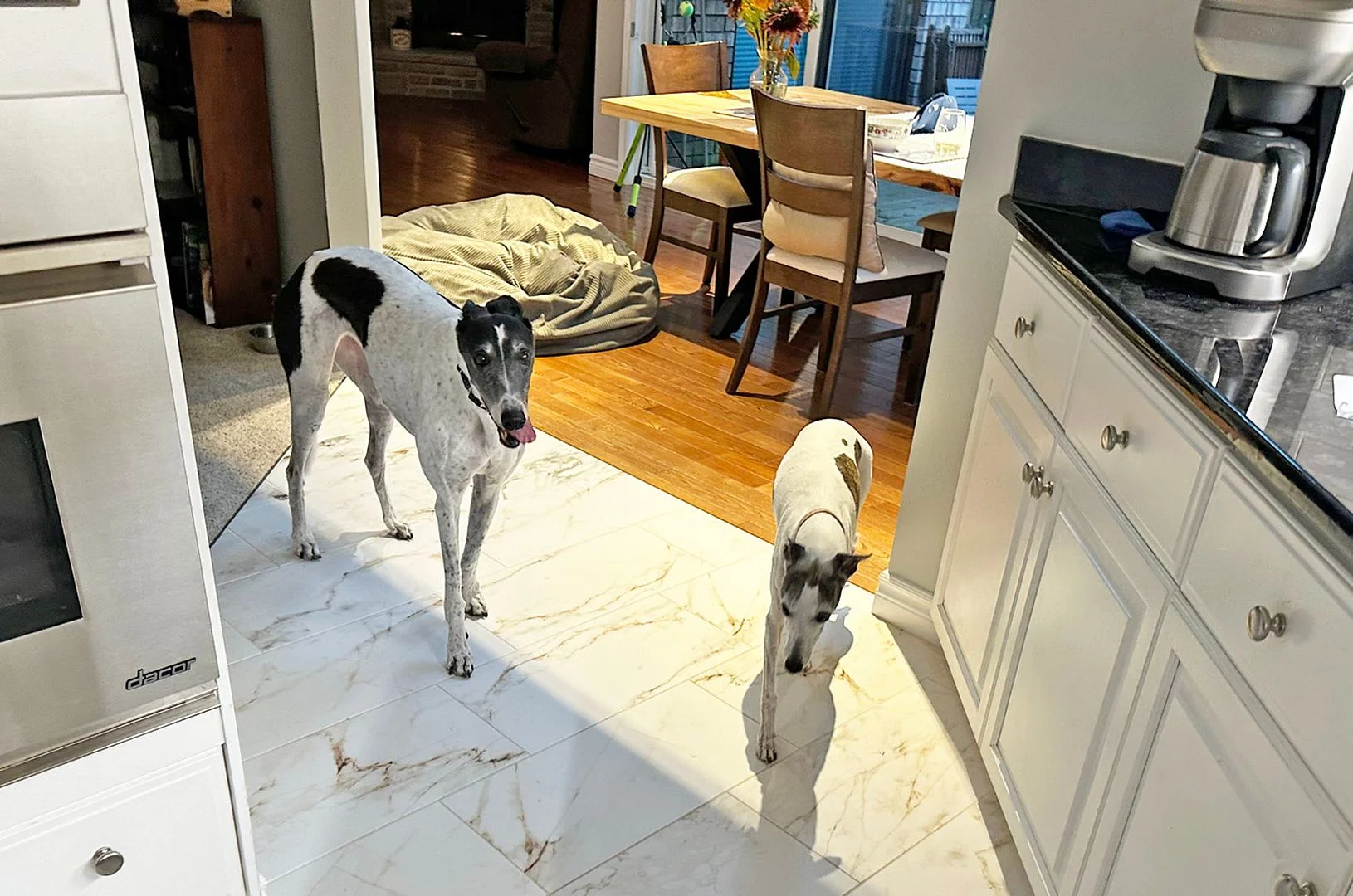 Maeve, our Whippet, can be snotty to other dogs in the house, but fortunately not only is Pearl big enough so that Maeve won't get too heated, they know each other well as Maeve has stated at Pearl's house for weeks at a time when we were on vacation.