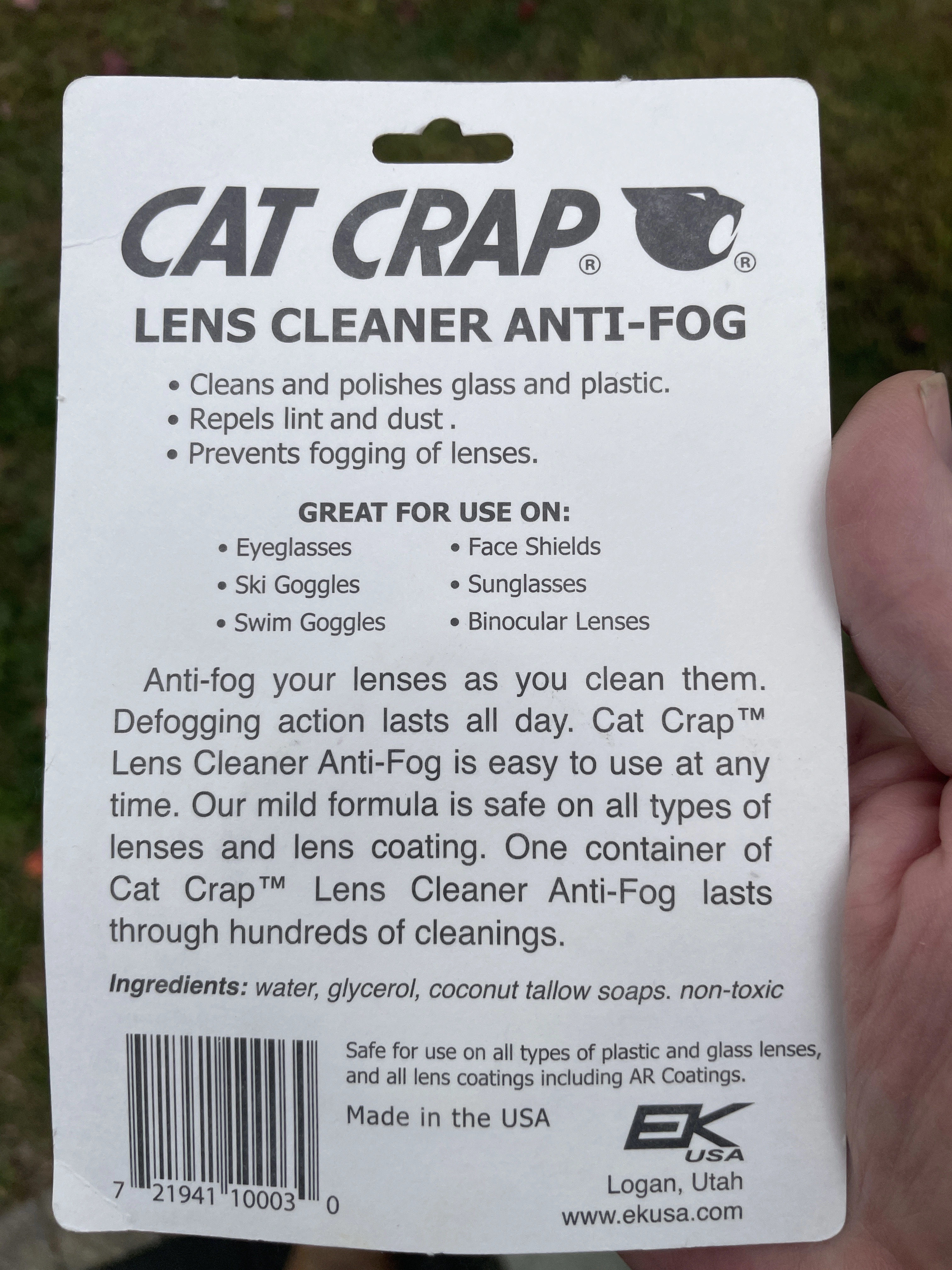 this actually works really well on all sorts of lenses/helmet visors/etc.