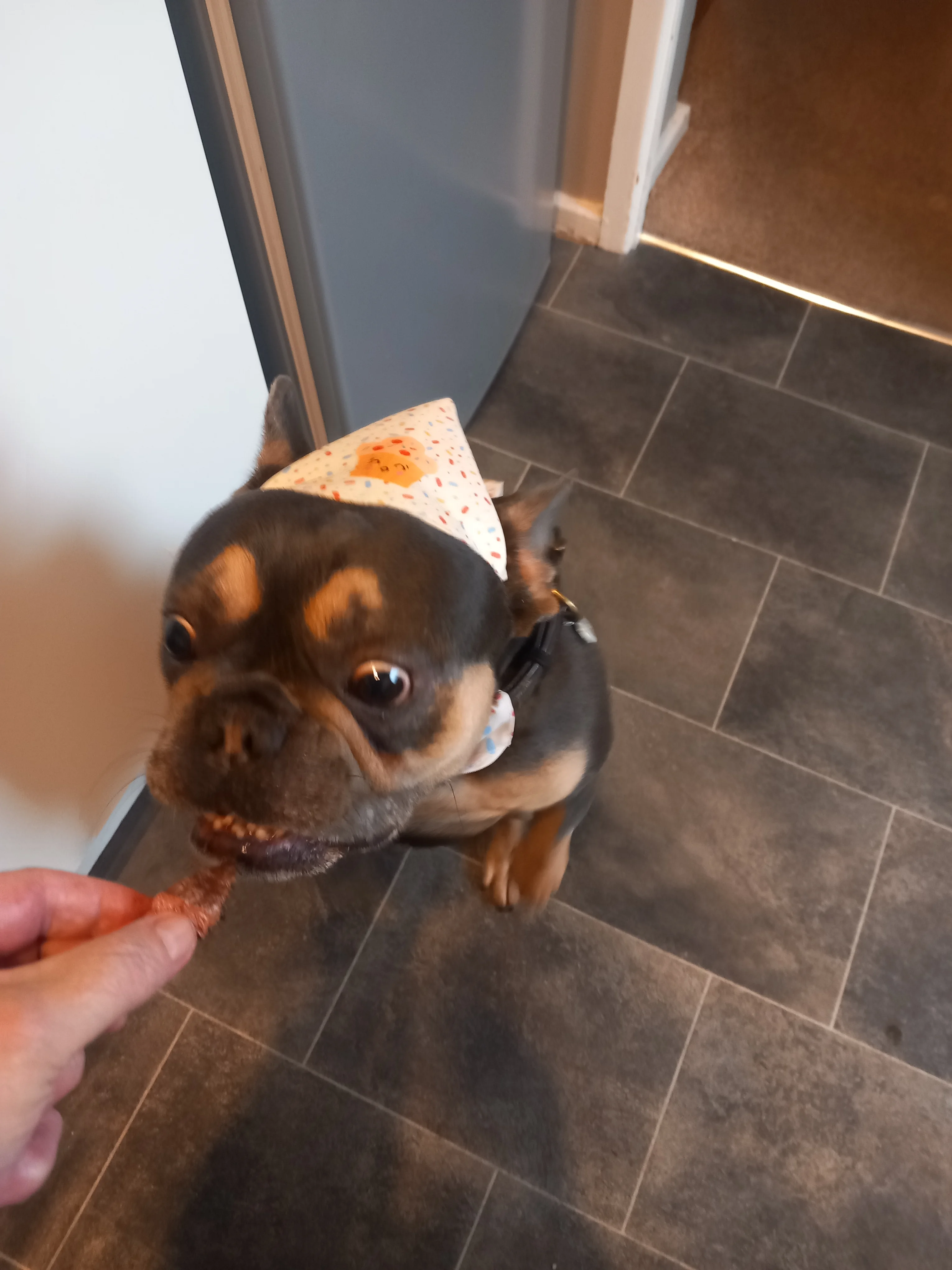 Posts 535 Likes 1,501 Turpinrr 路Oct 19, 2025 Mickey trying his new Cocopup harness before it goes away till Xmas. Out of shot in order to get him to pose is some boiled ham