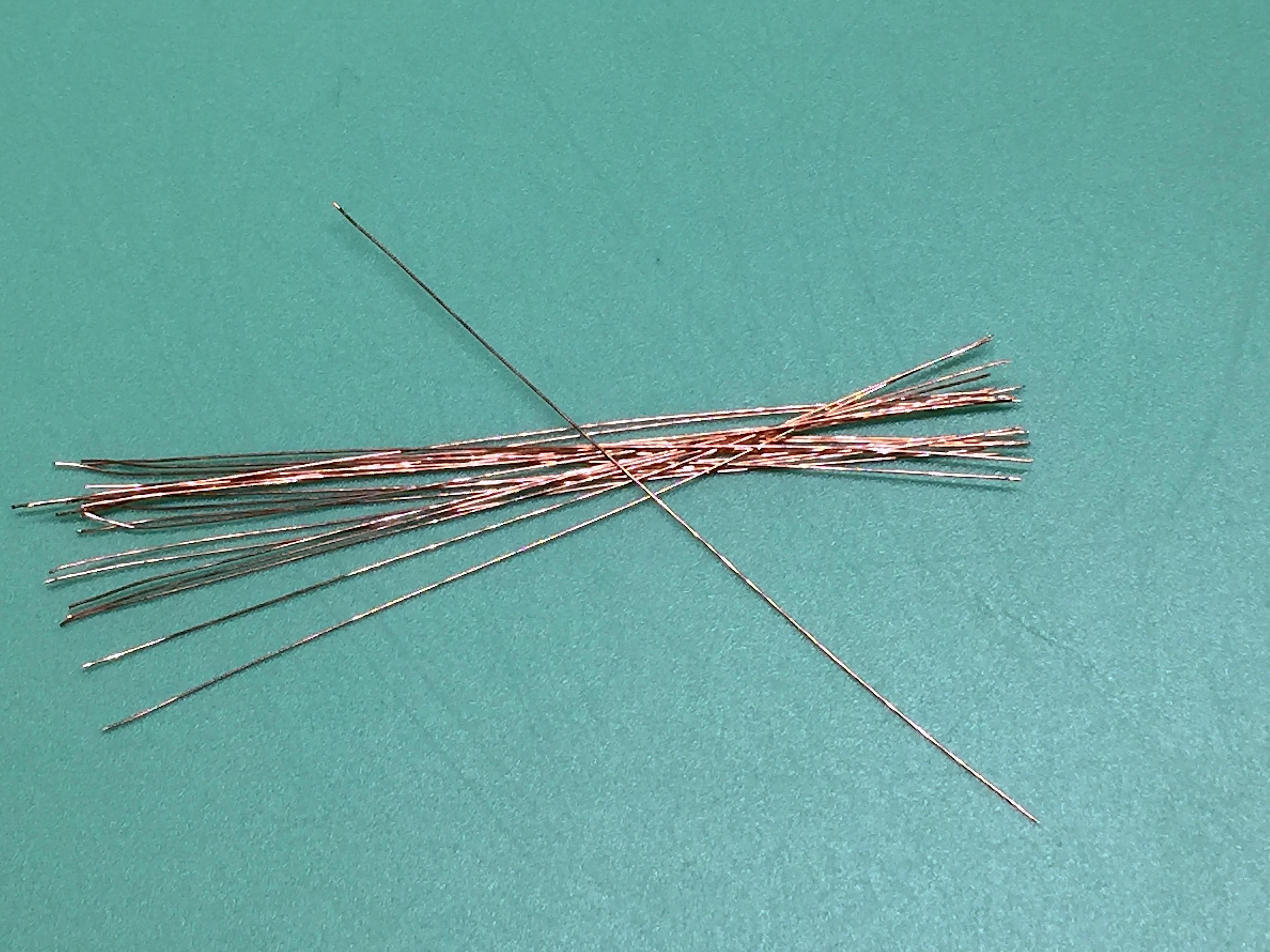 After some experimenting, I stripped some 240V appliance cord and got some nice fine copper strands about 0.15mm dia.
