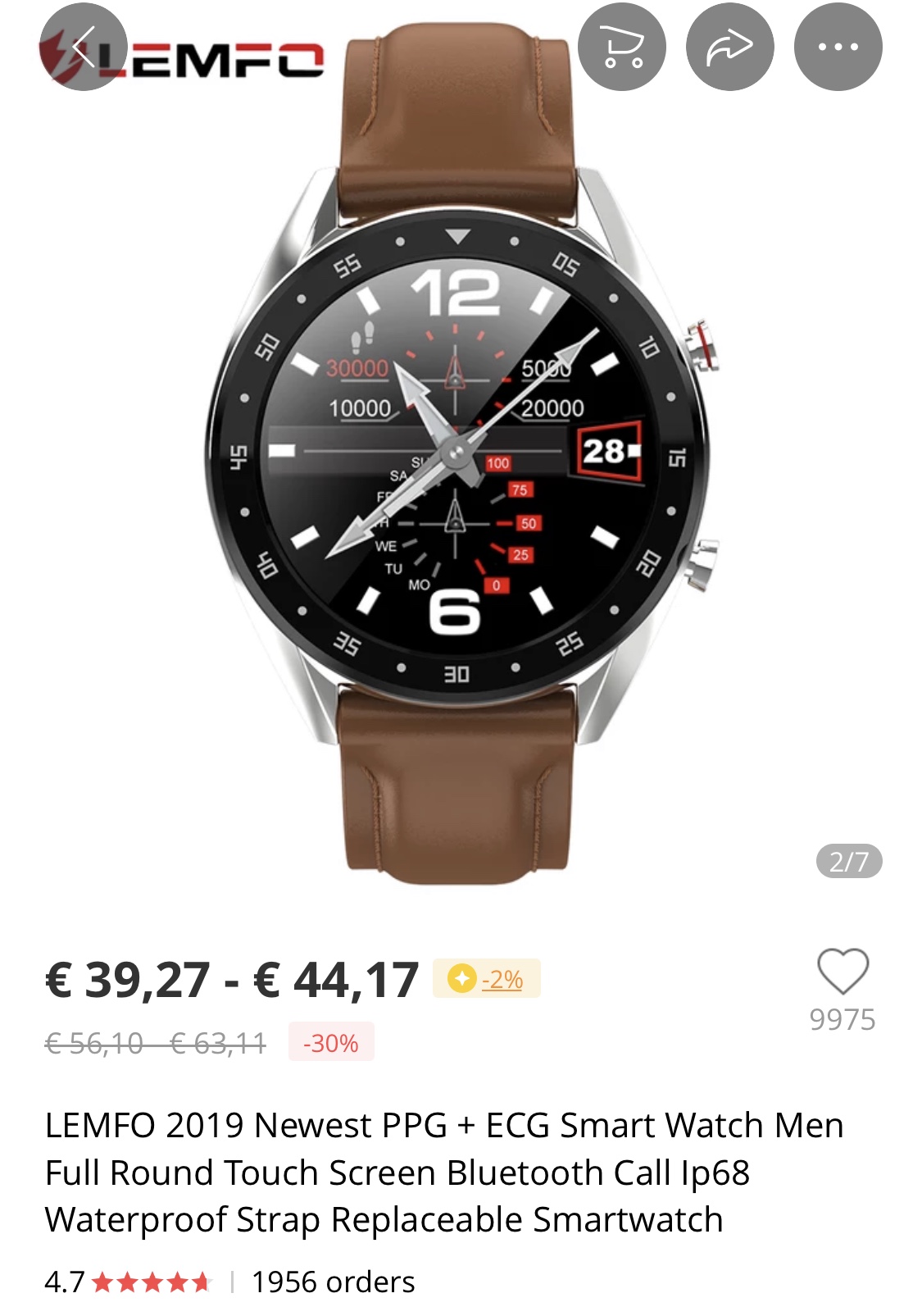 And Gen3 has also a very similar design to this Lemfo/Smartbox/Microwear (different brands, same watch) model L7 that you can buy at AliExpress for 40€