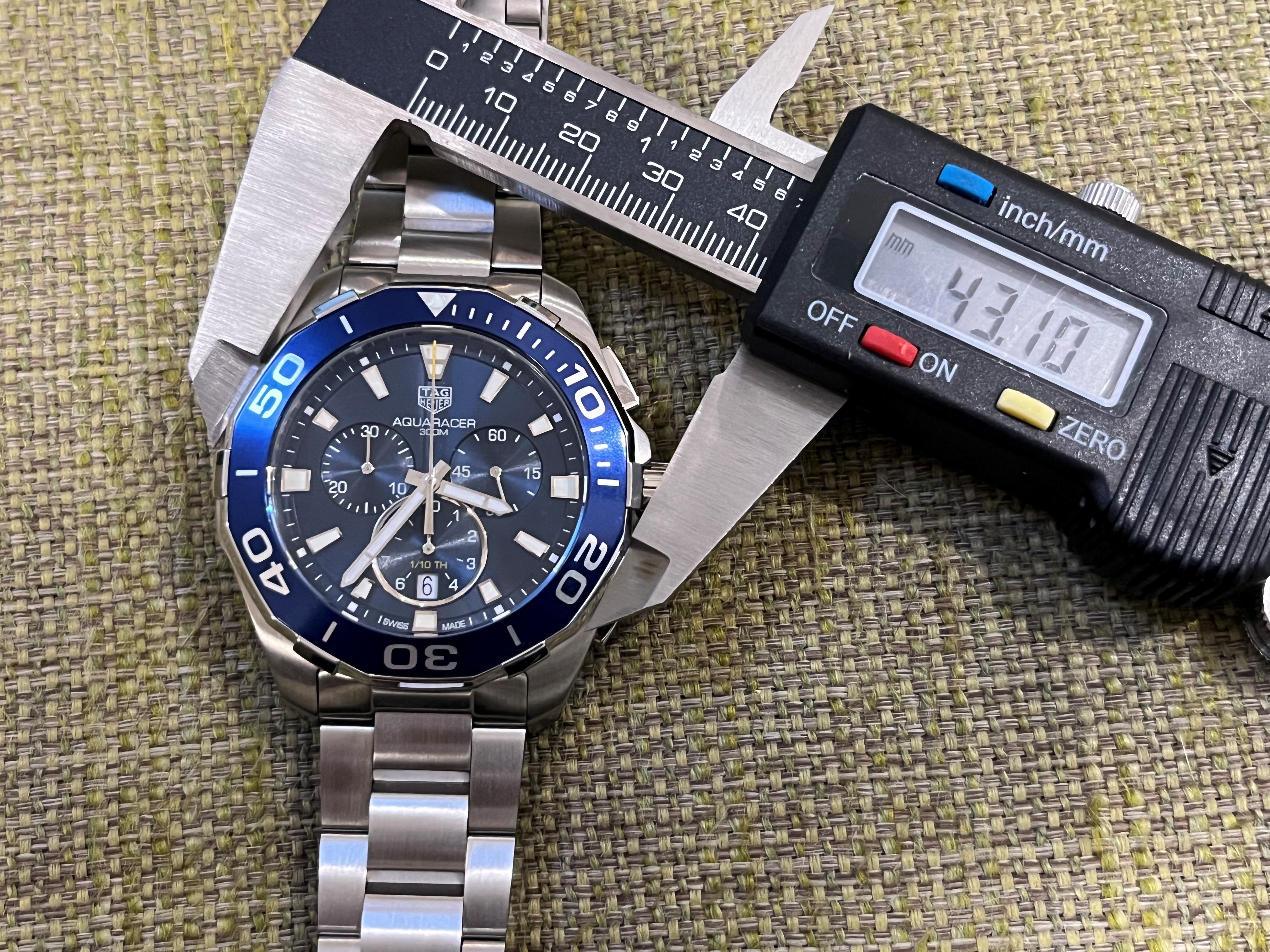 My first Tag Heuer CAY111B just arrived 😀 Im a bit puzzled on the size. I says 43 mm but when measuring I get the bezel to be 43 mm and the case somewhat bigger?