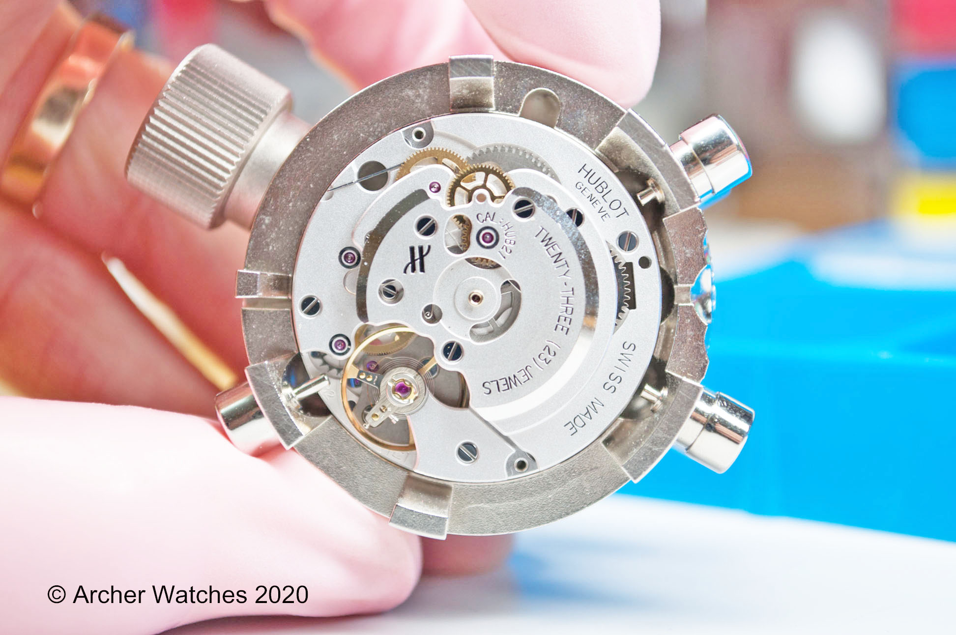 路路Omega Qualified WatchmakerI was recently asked to service a Hublot Big Bang King...interesting names these watches have. I am a bit hesitant to take on watches where I don't know what the movement is, and if I can get parts for it. This was a time and date only movement, and after doing some research it seemed that they may use some Sellita movements, namely the SW300, which is a clone of an ETA 2892.