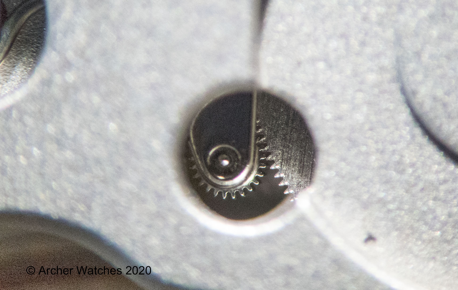It does not resemble and ETA 2892 or anything like that,. so at first I was a bit puzzled. I removed the rotor and then noticed a few things that looked very familiar - the click spring on the left was the first thing, then a flash later and I see the other two things: