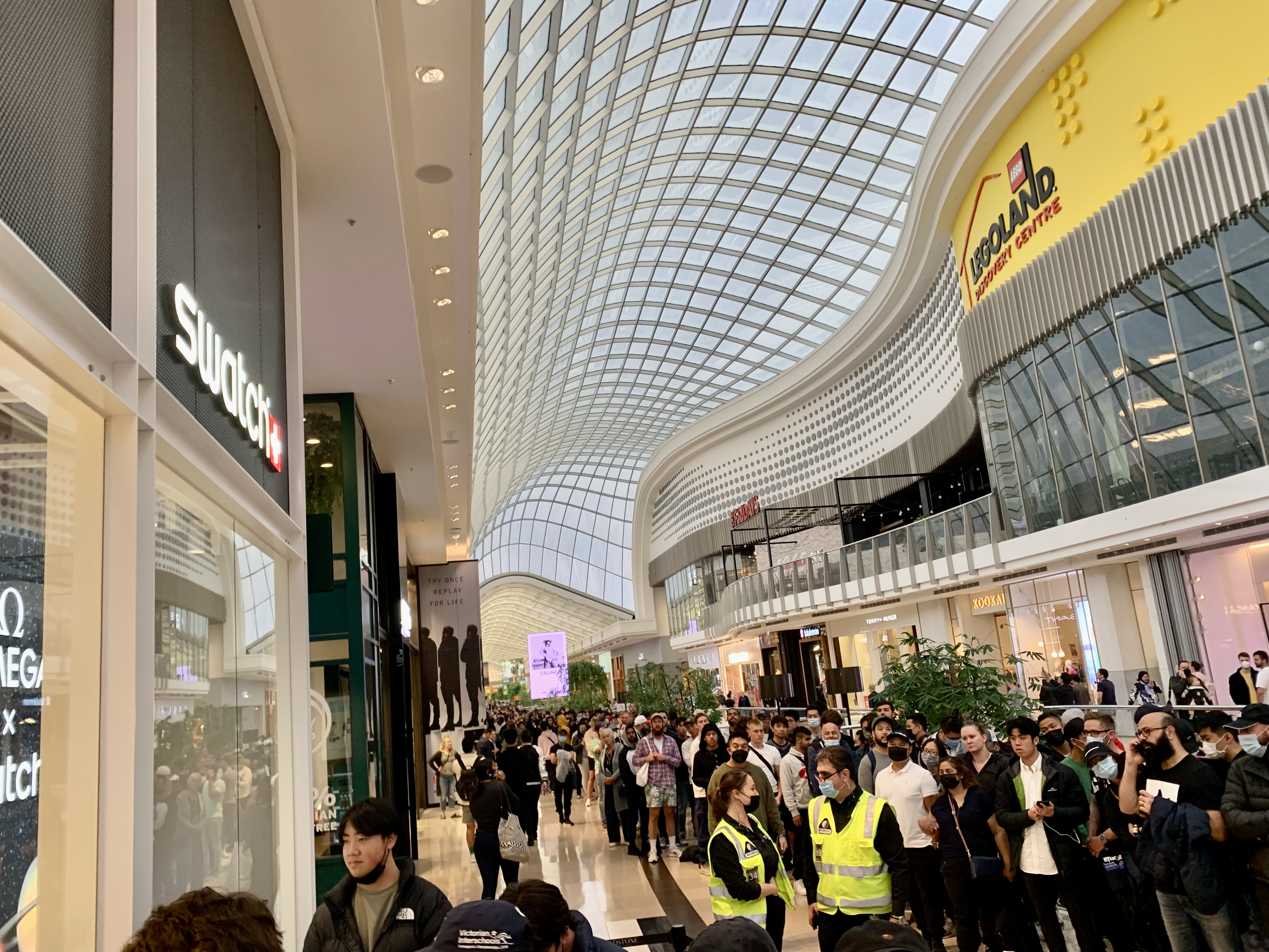 ·I got to Chadstone (Melb, AU) around 3am, lined up outside, there were only about 30 of us. As it approached 5am the line had about 300 people in it. All of the sudden someone from the way back bolted for the mall door which caused everyone else to do the same. The shop is inside the mall and the glass doors weren’t open yet but a swarm of people were there now outside in a heartbeat and us in the front lost our spots.