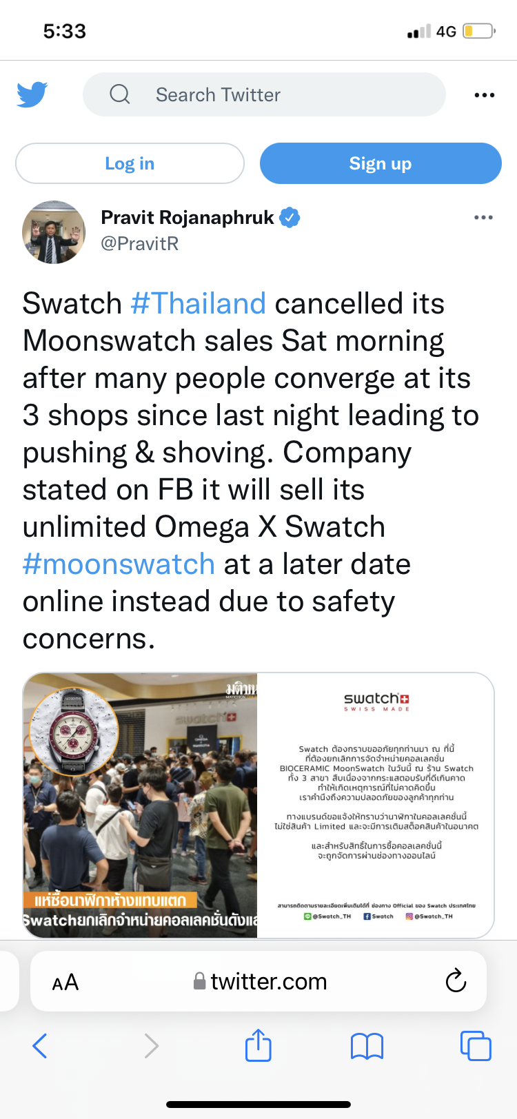 You were only allowed to get one watch. As it turned out they only had 150 total. I got close, was next to the Swatch shop window the whole time but we seemed to not move as we watched people let in one at a time to get their watches. There were about 10 police crowd controlling (they had to be called in) and they sold out by 11:30am - store opened at 9am. They took their time selling.