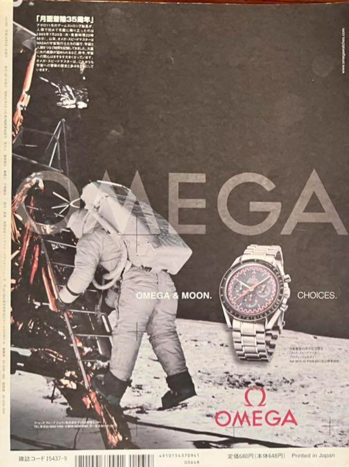 ·These are magazine ads for the Speedmaster Japan Racing 3570.40 from when it was released. They appeared on the back covers of the September 2004 issues of Coyote and STUDIOVOICE.