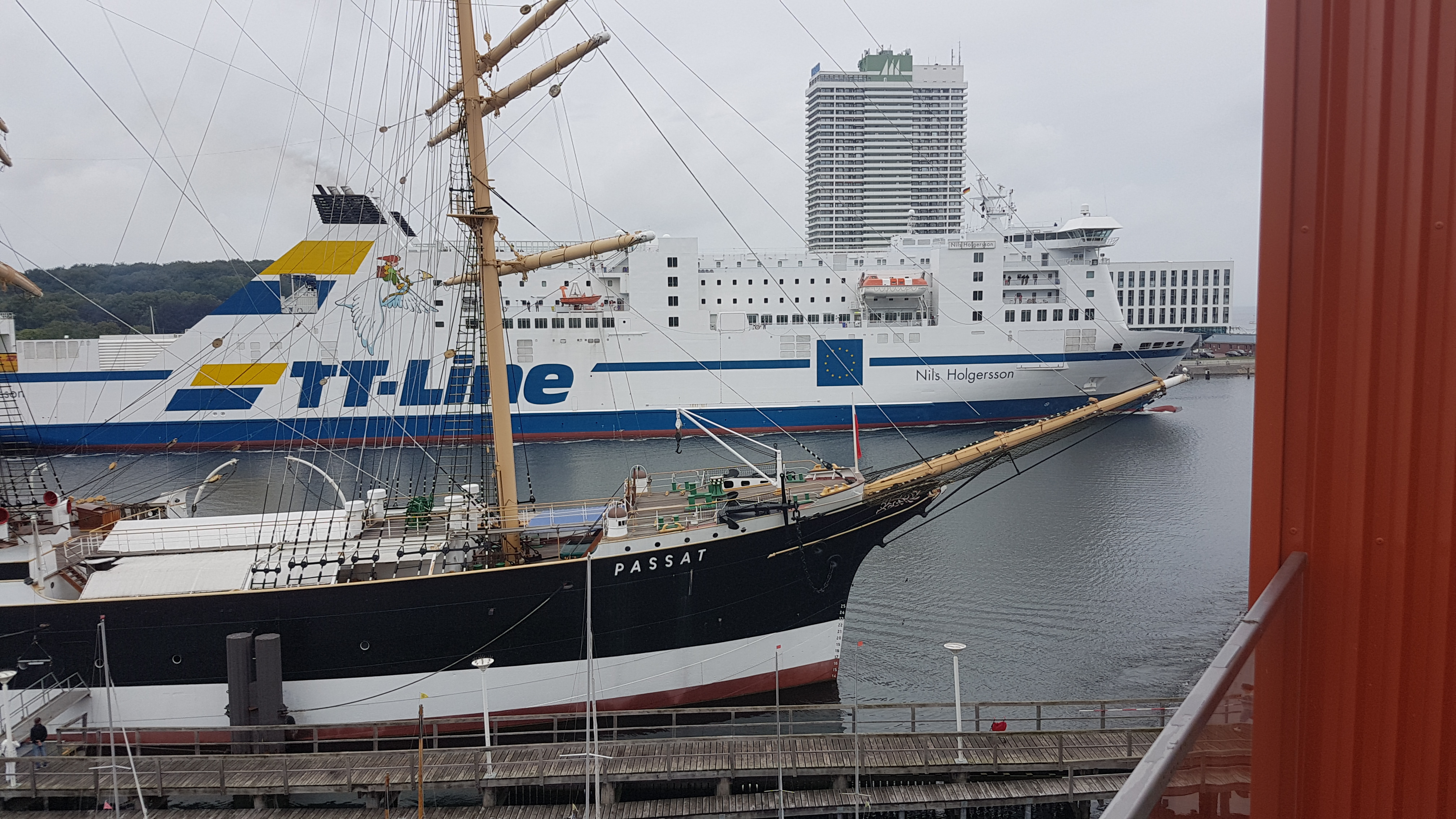 Evening view of Travemunde (Baltic Sea). The sailing ship in front is the "PASSAT", launched in 1911: