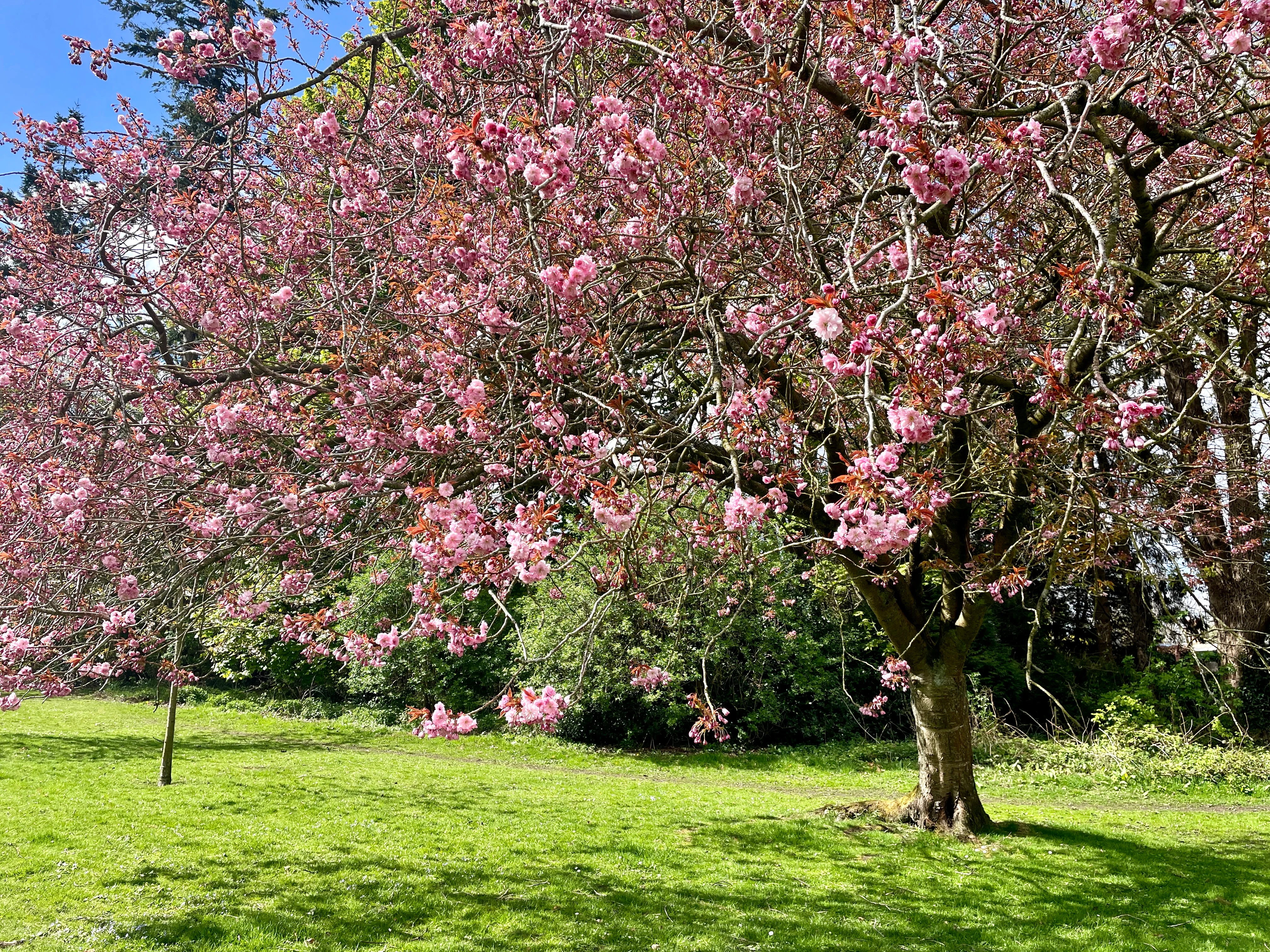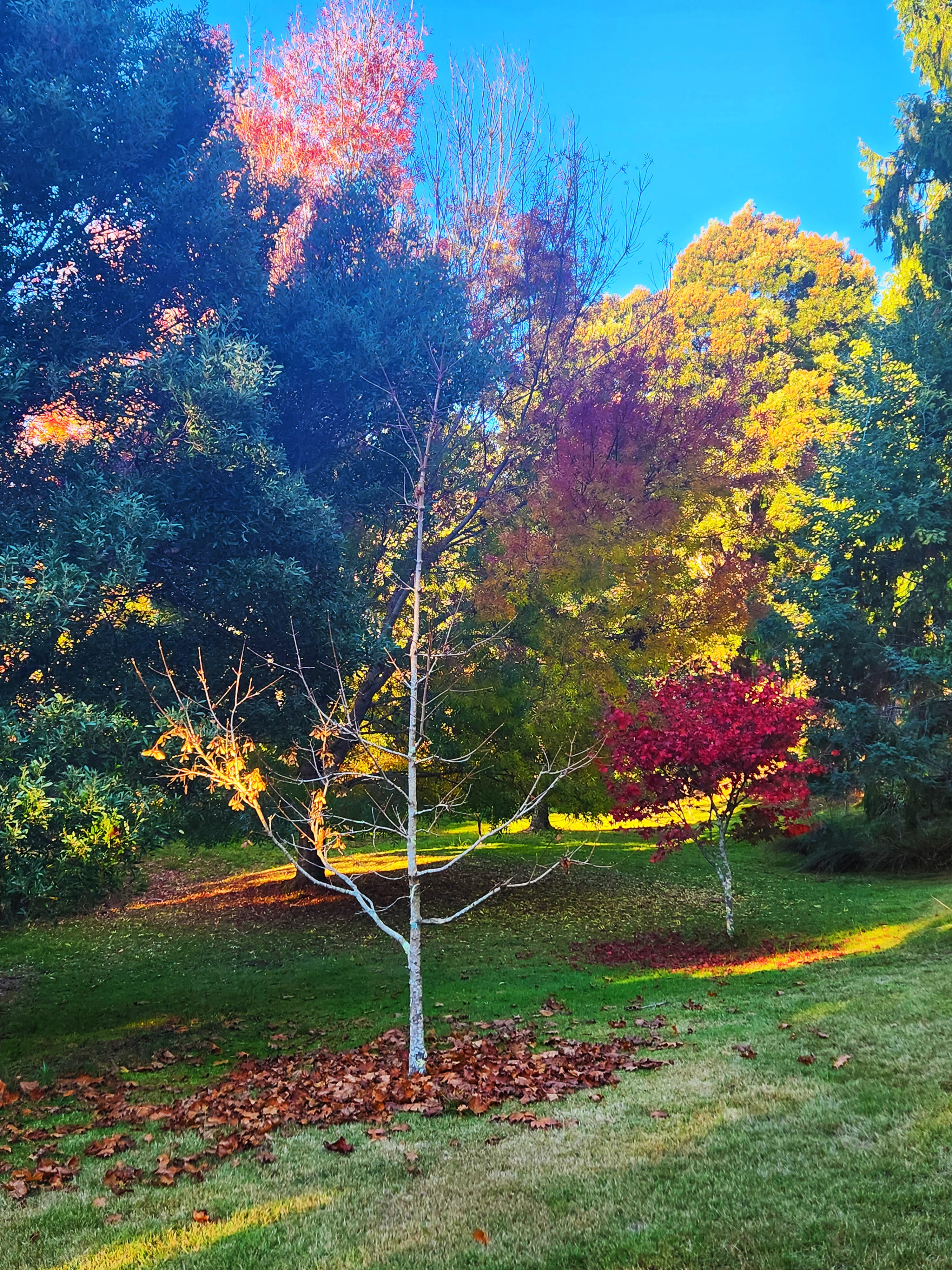 The Liquid Amber has finished for the year, the Japanese Maple is in full colour, the Claret Ash is halfway there and the Blackwood is covered in summer's dry seed pods.