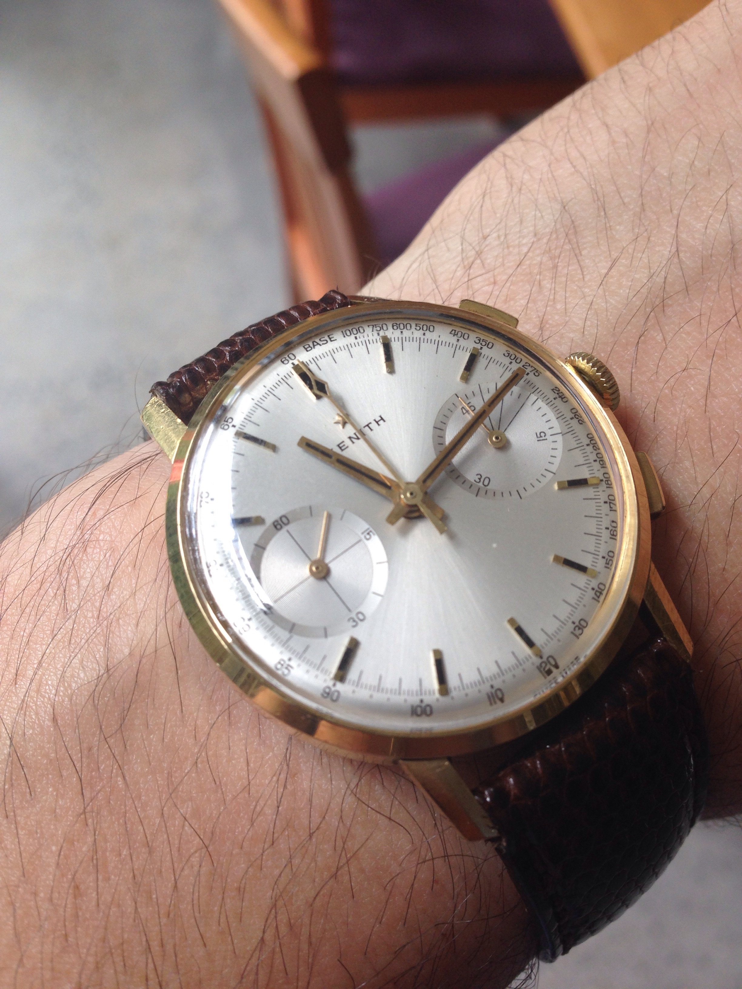 I've been after a dress 2 register chrono for a while now. The hunt goes into high gear whenever @dsio pulls out his Omega cal 320. But I hadn't seen the Zenith 146DP until @Mick Tock pulled out his. So, here is mine. Albeit 35mm, not 37mm. I'm pretty happy with the edges on the lugs and bezel.