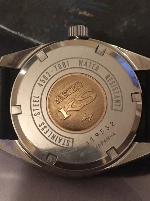 Anyway, as best as I can tell, the case appears to be untouched. The edges are very well defined and not soft. The caseback engraving is nice and well defined. The dial is pristine with none of the degradation commonly seen next to the rehaut. The last thing that is great about it is the double applied logo, "SEIKO" and "KS".