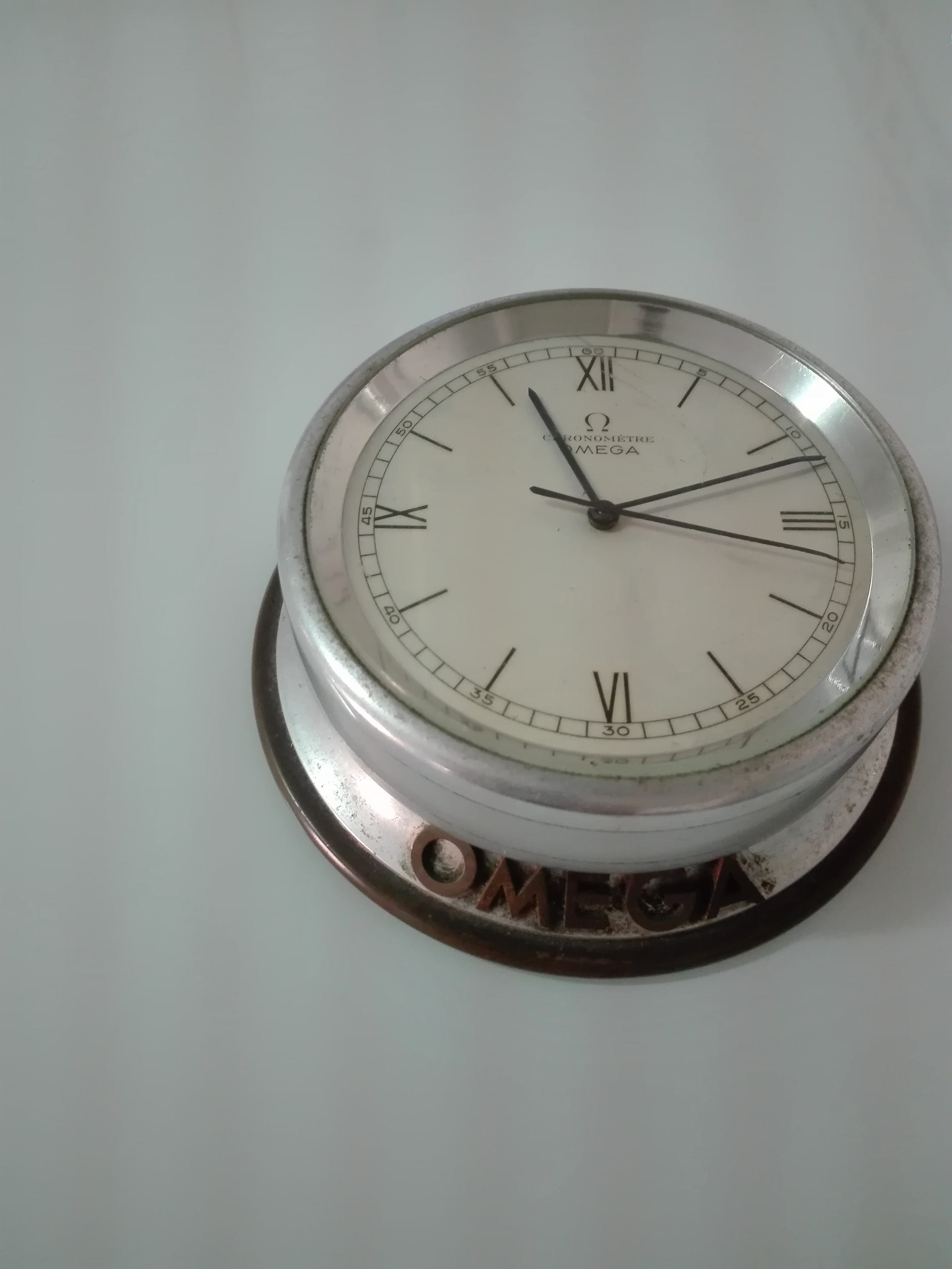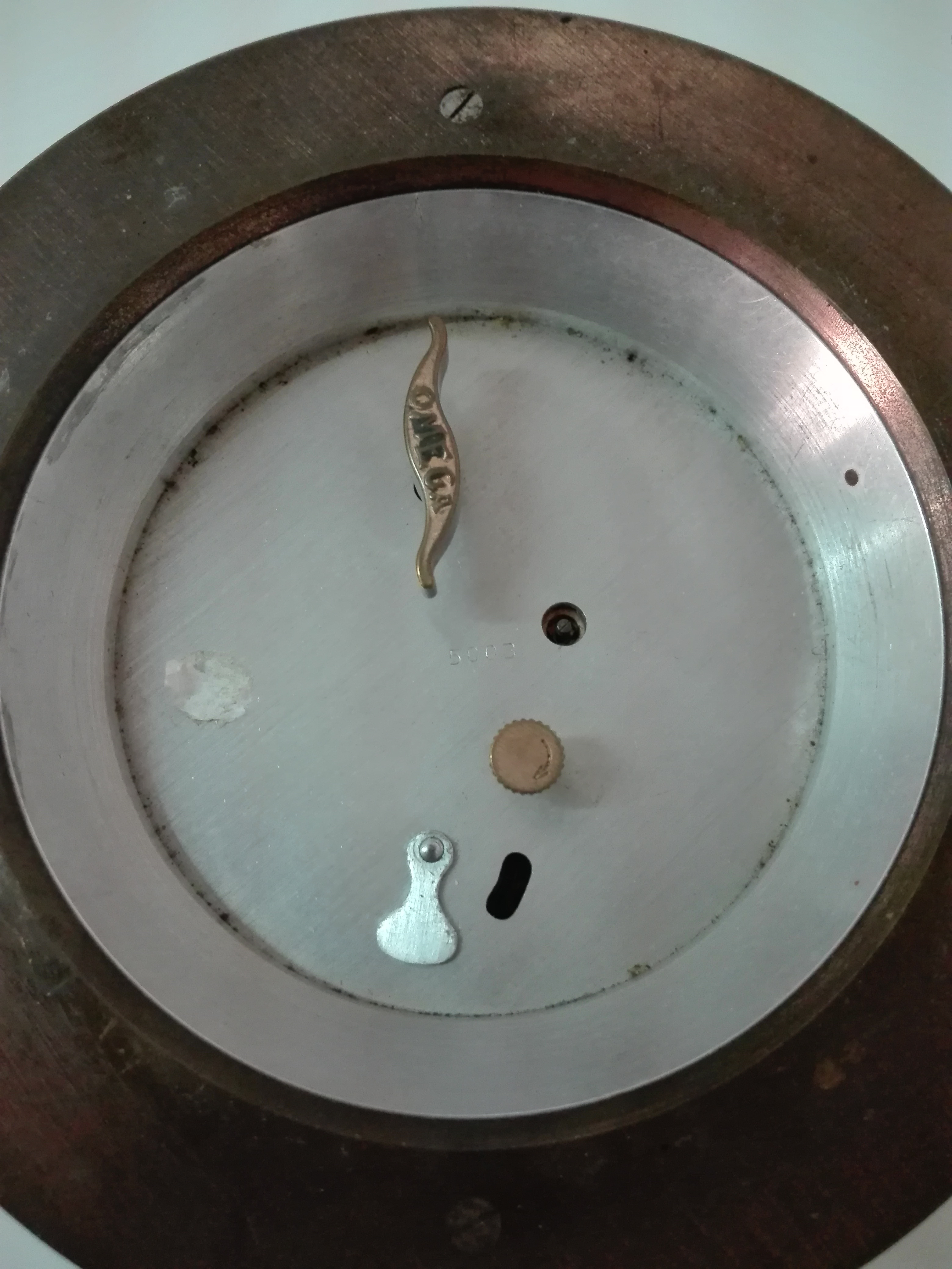 Nice clock. And if I were you I would have it service just make sure they know what they are doing there are some incompetent clockmakers out there I know. Also there is a hole on the back I bet that's for adjusting the time for fast and slow and the nob with Omega for winding it and the other plain nob with arrow for setting the time. I am also a clock nut I collect any thing that tells time wristwatches pocket watches and clocks have slowed down on clocks since I moved to MT one thing about Montana there is nobody that repairs them only one watchmaker in Bozeman MT and he stopped working on clocks and some times won't touch some watches I bring in. Been shipping most watches out of state for service kind of a bummer I like doing things local. But great Omega clock your grandfather left you. And I bet it was a shop clock in a store that sold Omega watches.