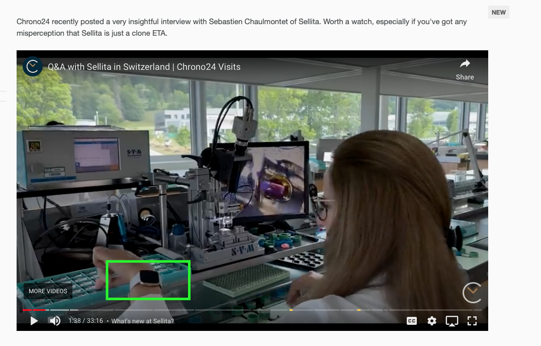 Posts 487 Likes 1,718 mzinski ·Dec 6, 2022 Chrono24 recently posted a very insightful interview with Sebastien Chaulmontet of Sellita. Worth a watch, especially if you've got any misperception that Sellita is just a clone ETA.