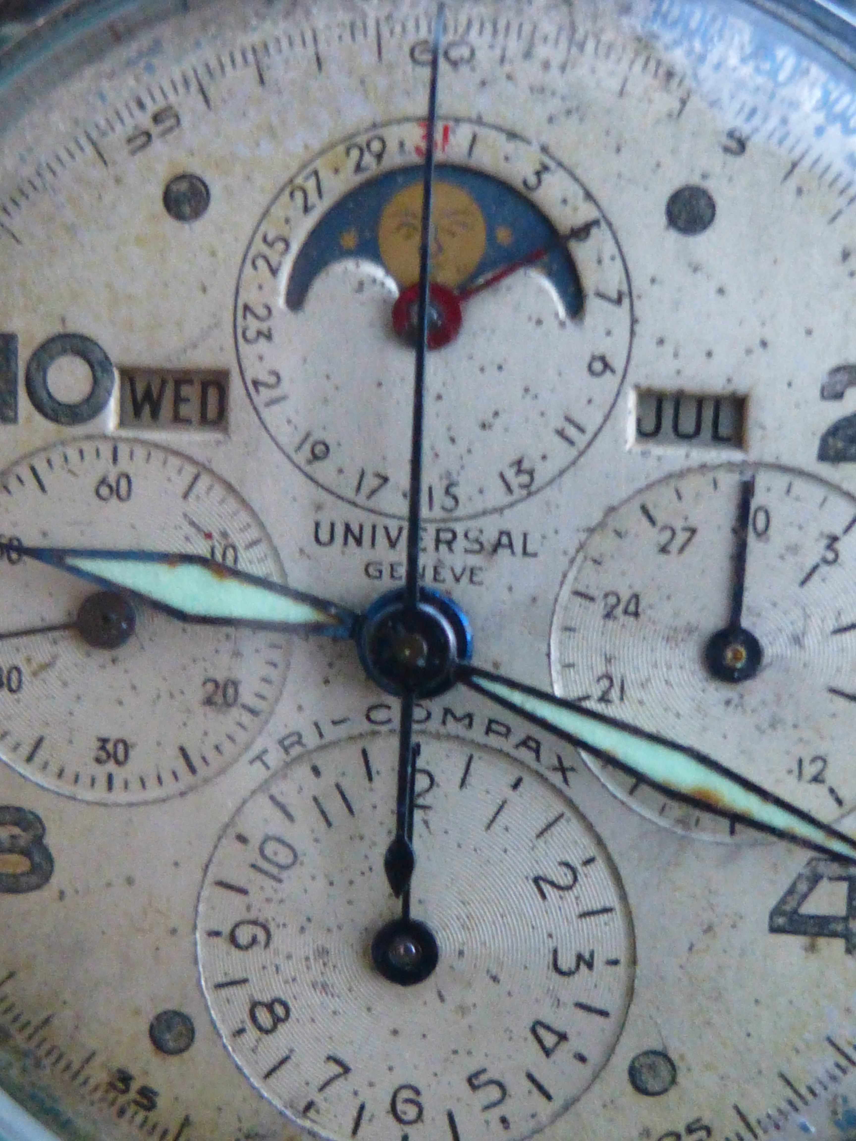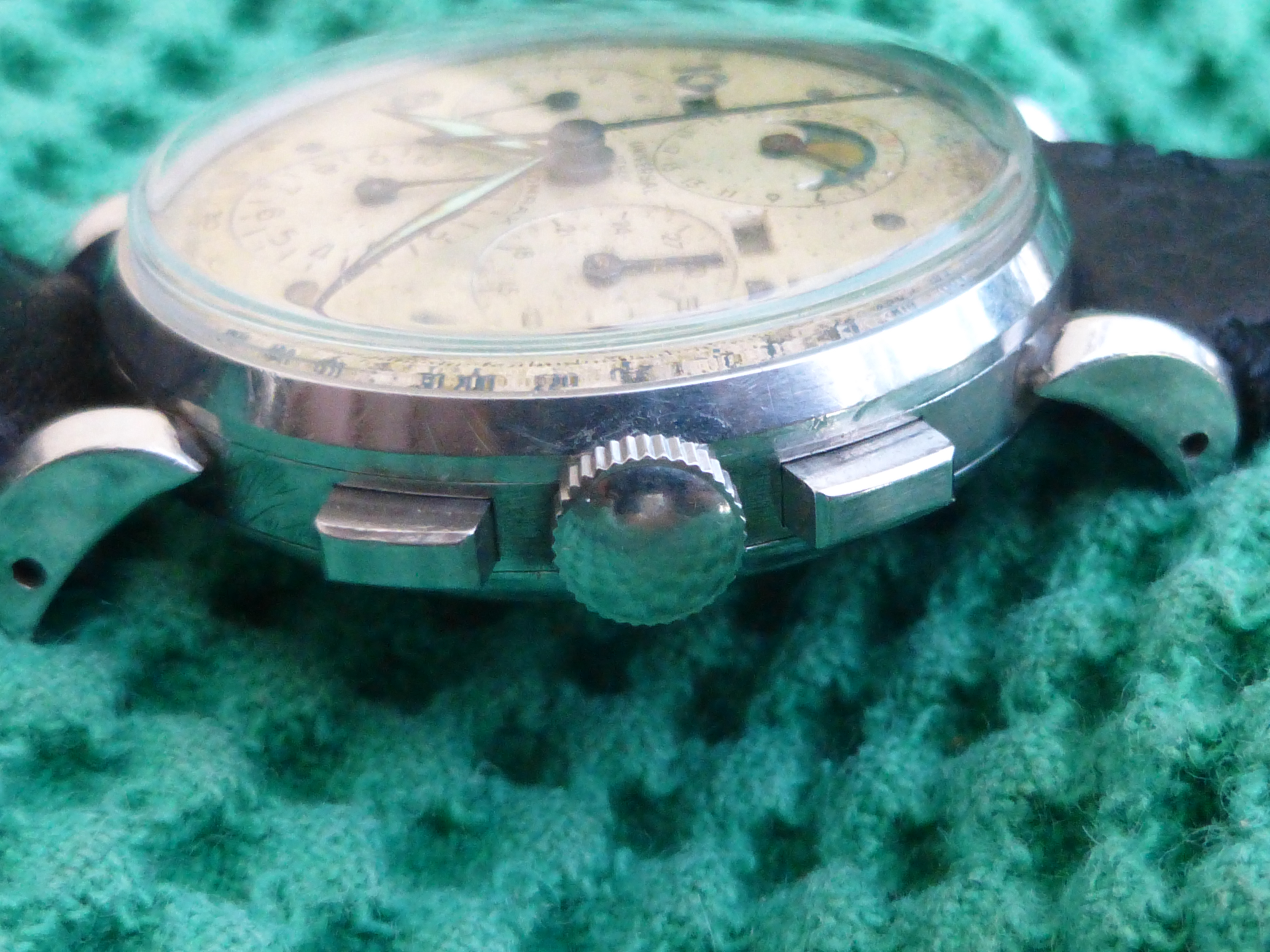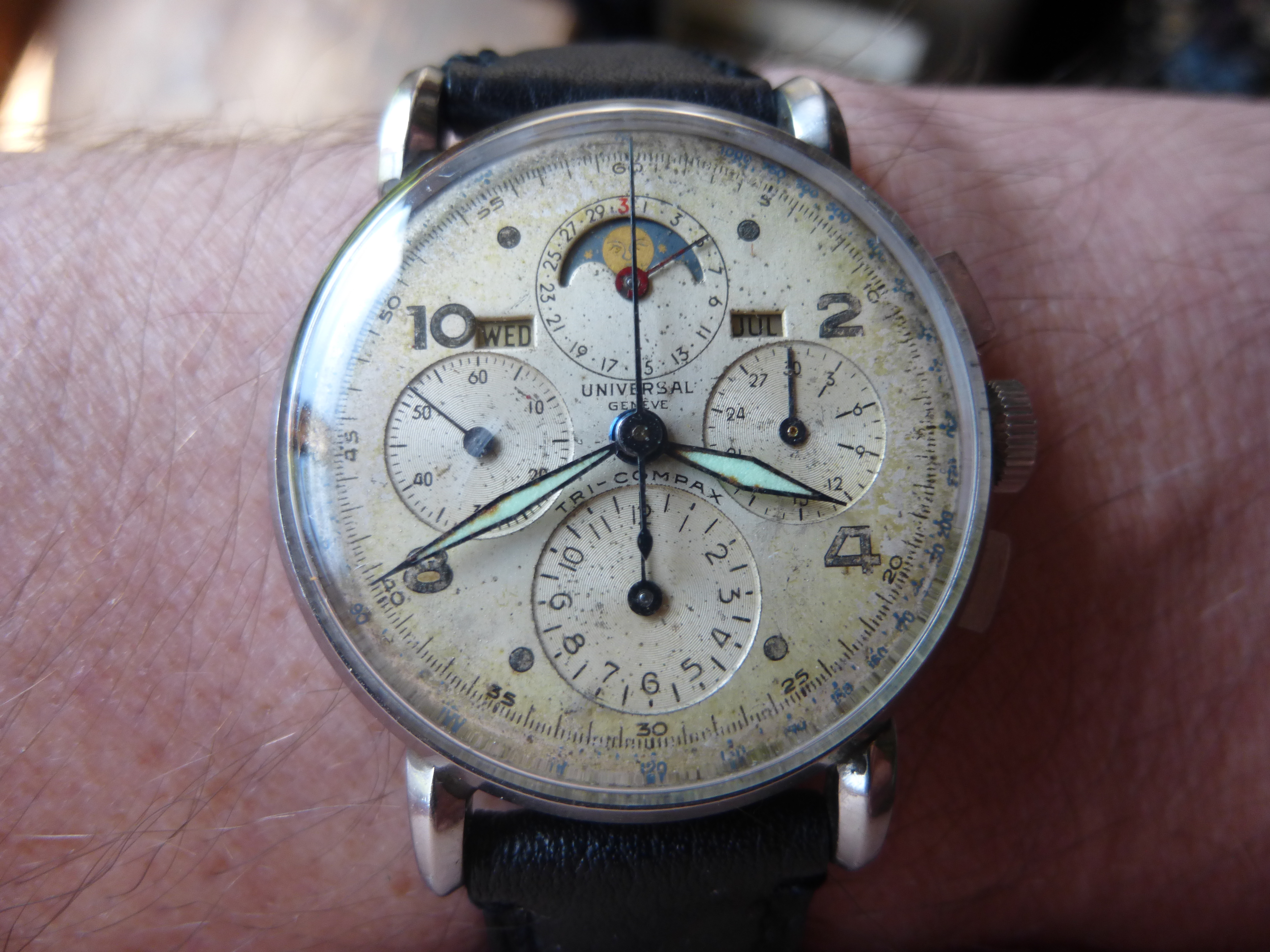 new to the forum I wan´t to share some beautiful pictures of my vintage UG Tricompax. I was able to buy it from a collector two month ago from Austria. He took the photos for his ad, so I felt in love ... Starting my little collection two years ago with some Valjoux chronos, I couldn´t resist. The watch was serviced last year so the movement is in good shape.