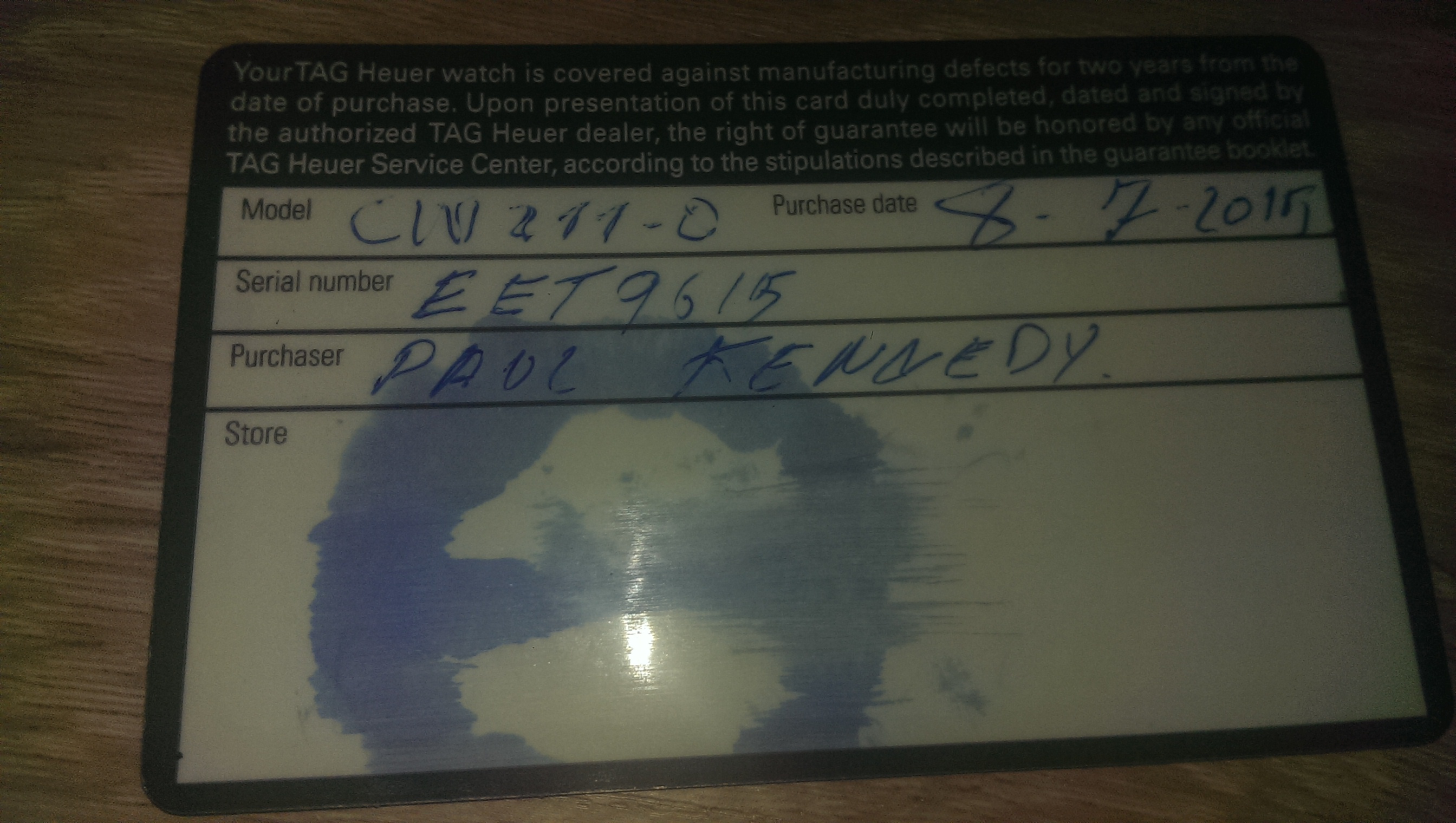 Does the date on the warranty card look to be altered from 2011 to 2015?